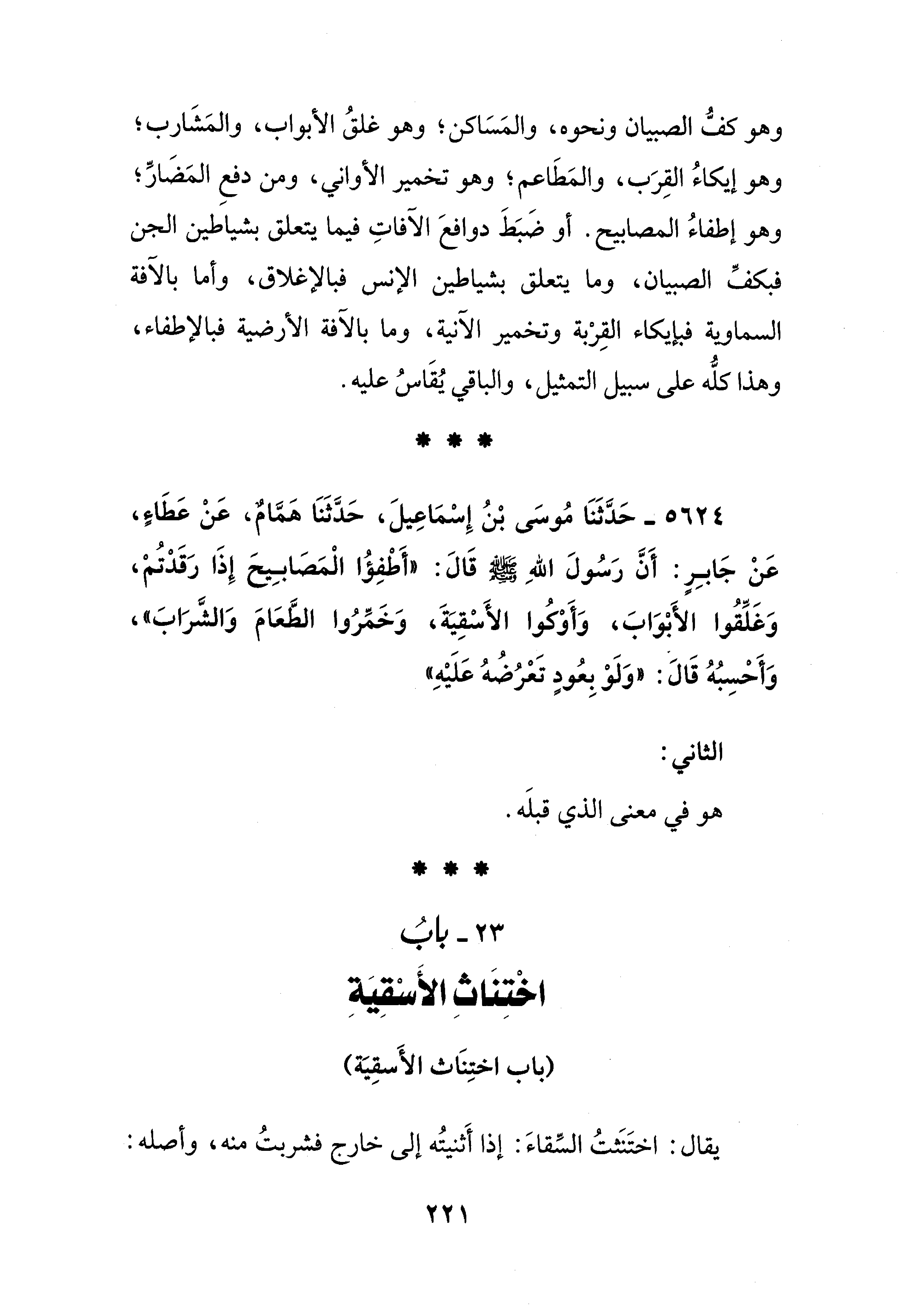 23 - بابُ اخْتِنَاثِ الأَسْقِيَةِ