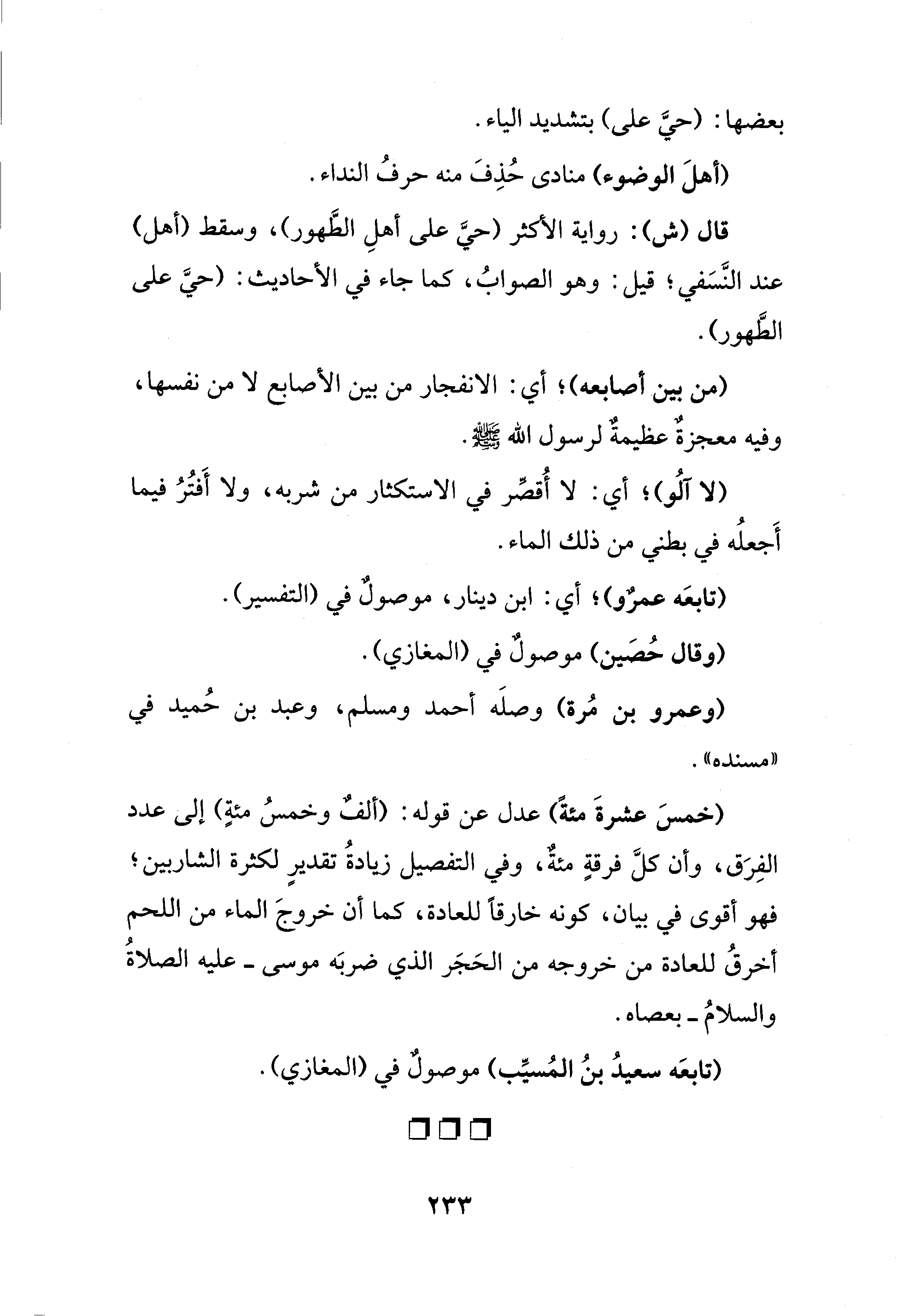 (خمسَ عشرةَ مئةً) عدل عن قوله: (ألفٌ وخمسُ مئة) إلى عدد الفِرَق، وأن كلَّ فرقةٍ مئةٌ، وفي التفصيل زيادةُ تقدير لكثرة الشاربين؛ فهو أقوى في بيان، كونه خارقًا للعادة، كما أن خروجَ الماء من اللحم أخرقُ للعادة من خروجه من الحَجَر الذي ضربَه موسى -عليه الصلاةُ والسلامُ- بعصاه.