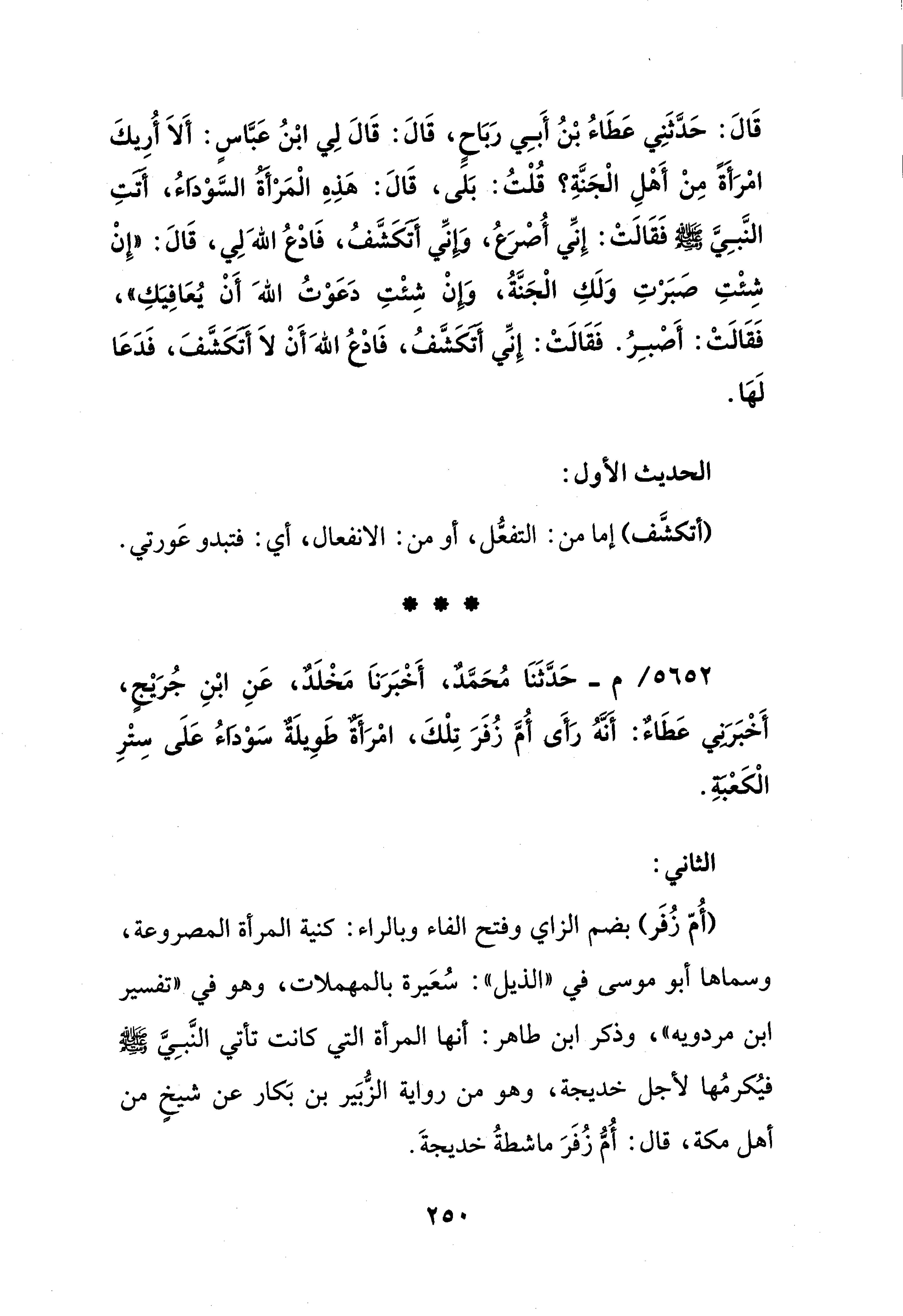 5652 / -م - حَدَّثَنَا مُحَمَّد، أَخْبَرَنَا مَخْلَدٌ، عَنِ ابْنِ جُرَيْجٍ، أَخْبَرَني عَطَاءٌ: أَنَّهُ رَأَى أُمَّ زُفَرَ تِلْكَ، امْرَأةٌ طَوِيلَةٌ سَوْداءُ عَلَى سِتْرِ الْكَعْبة.