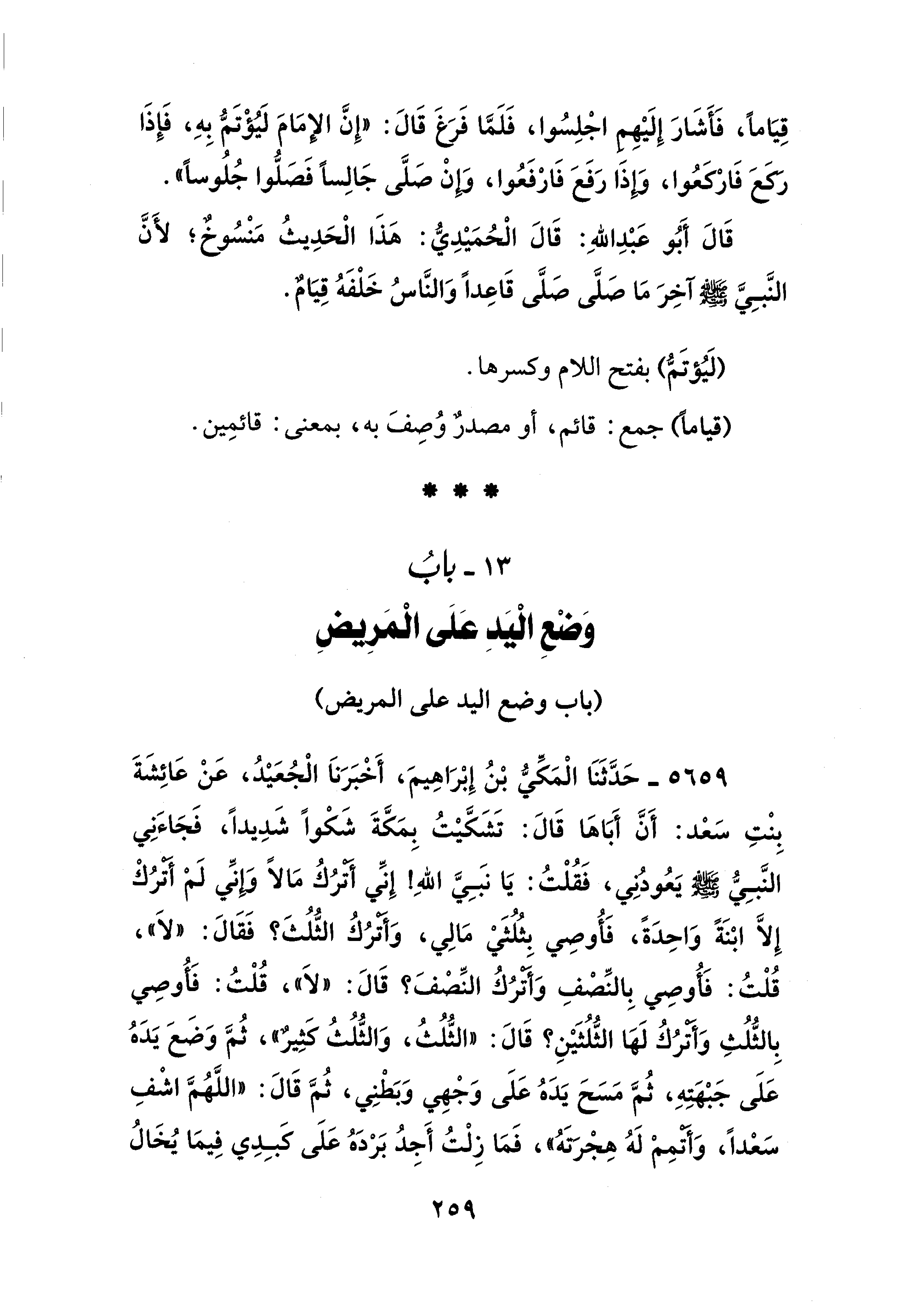 13 - بابُ وَضعِ الْيَدِ عَلَى الْمَرِيضِ