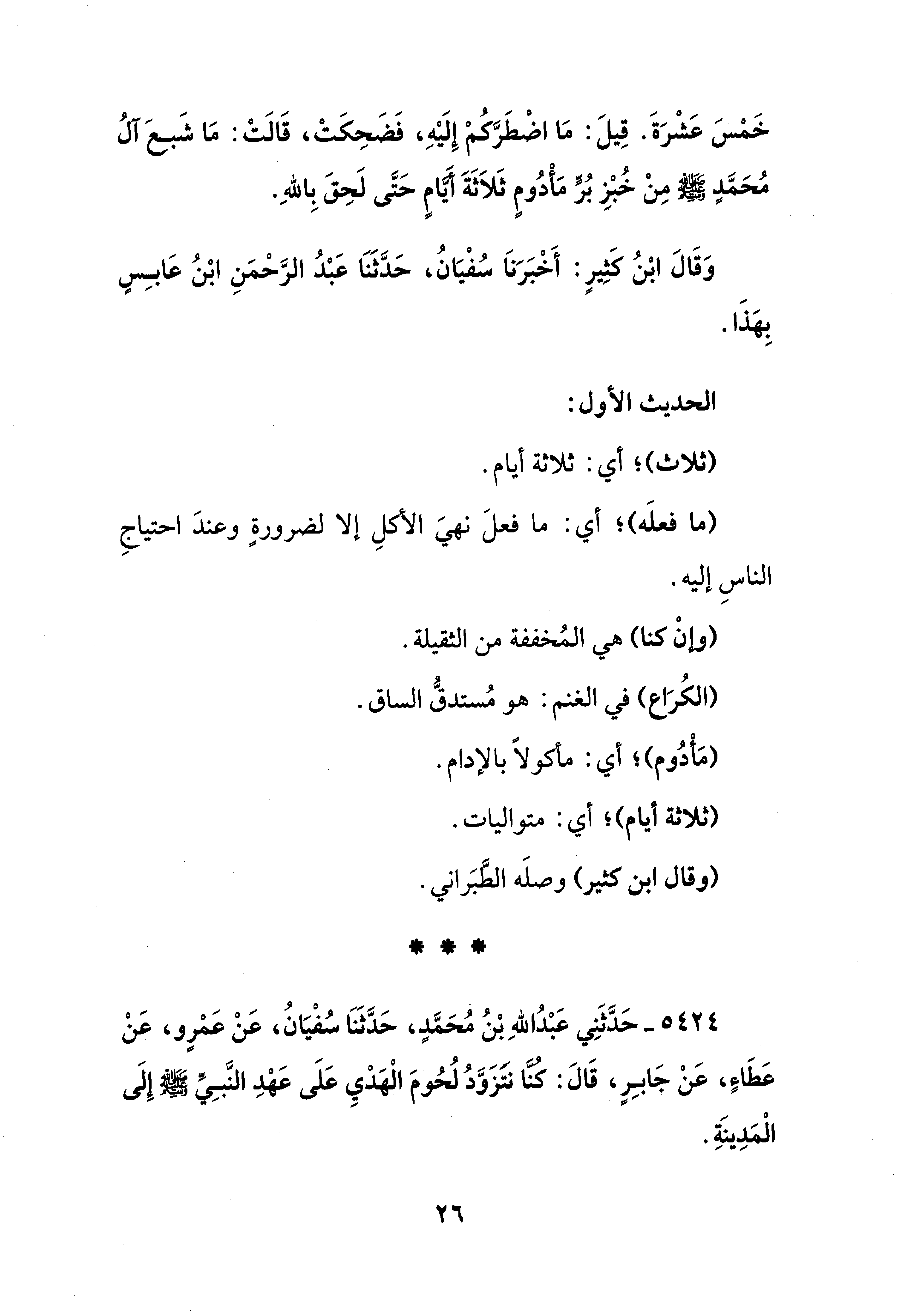 5424 - حَدَّثَنِي عَبْدُ اللهِ بْنُ مُحَمَّدٍ، حَدَّثنا سُفْيَانُ، عَنْ عَمْرٍو، عَنْ عَطَاءٍ، عَنْ جَابِرٍ، قَالَ: كنَّا نتَزَوَّدُ لُحُومَ الْهَدْيِ عَلَى عَهْدِ النَّبِيِّ - صلى الله عليه وسلم - إِلَى الْمَدِينَةِ.