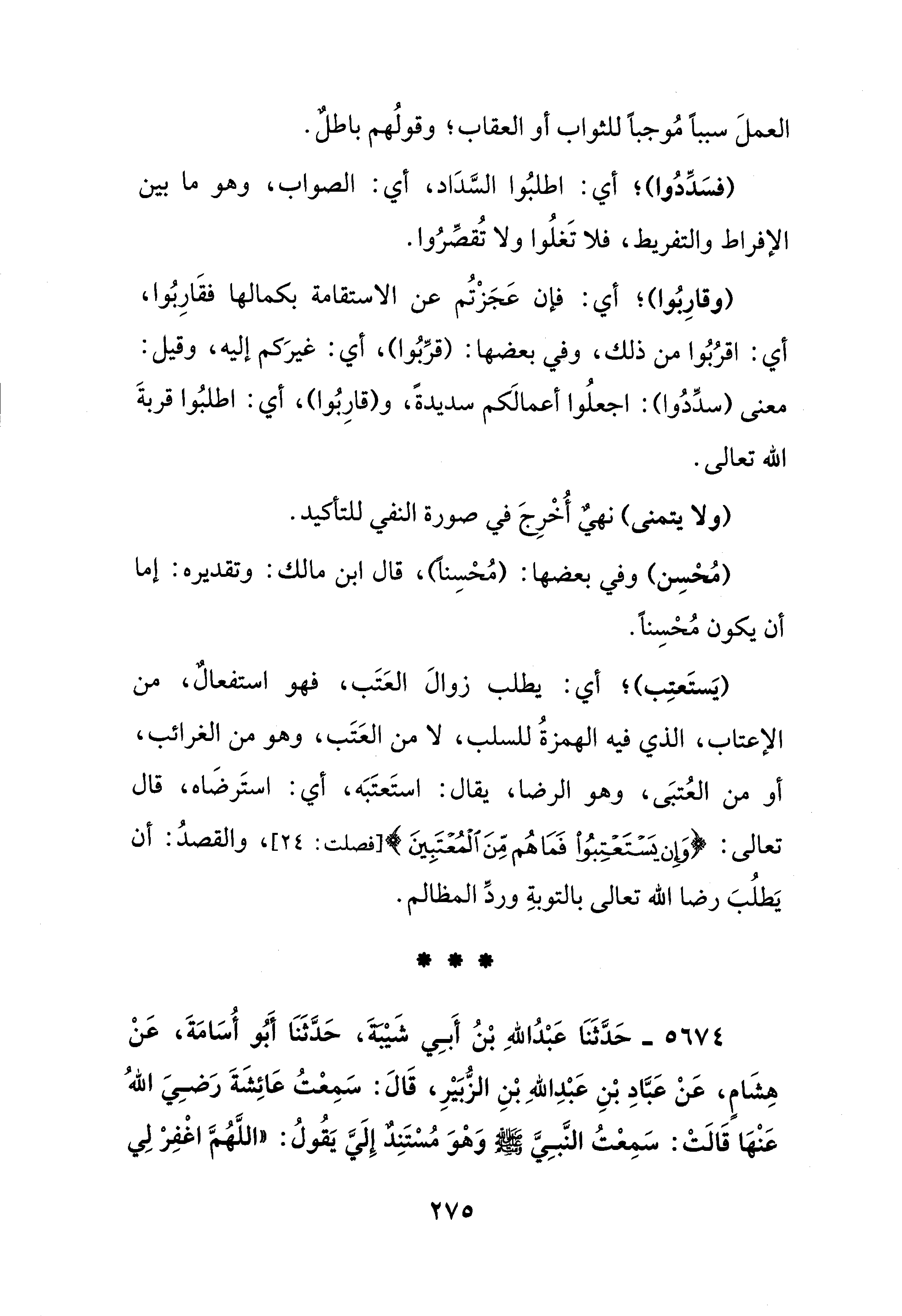 (فسَدِّدُوا)؛ أي: اطلبُوا السَّدَاد، أي: الصواب، وهو ما بين الإفراط والتفريط، فلا تَغلُوا ولا تُقصِّرُوا.