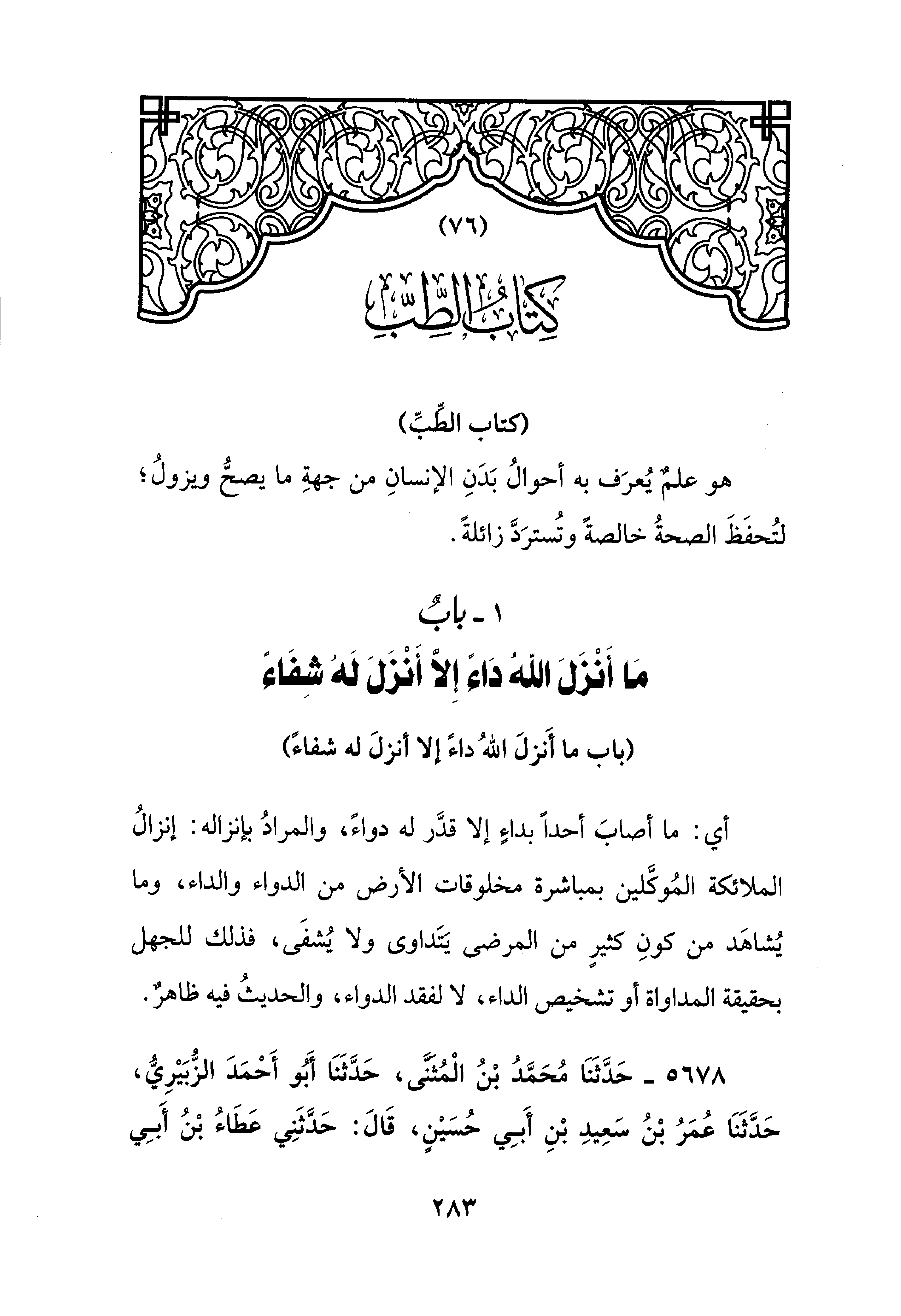 1 - بابٌ مَا أَنْزَلَ اللهُ دَاءً إِلا أَنْزَلَ لَهُ شِفَاءً