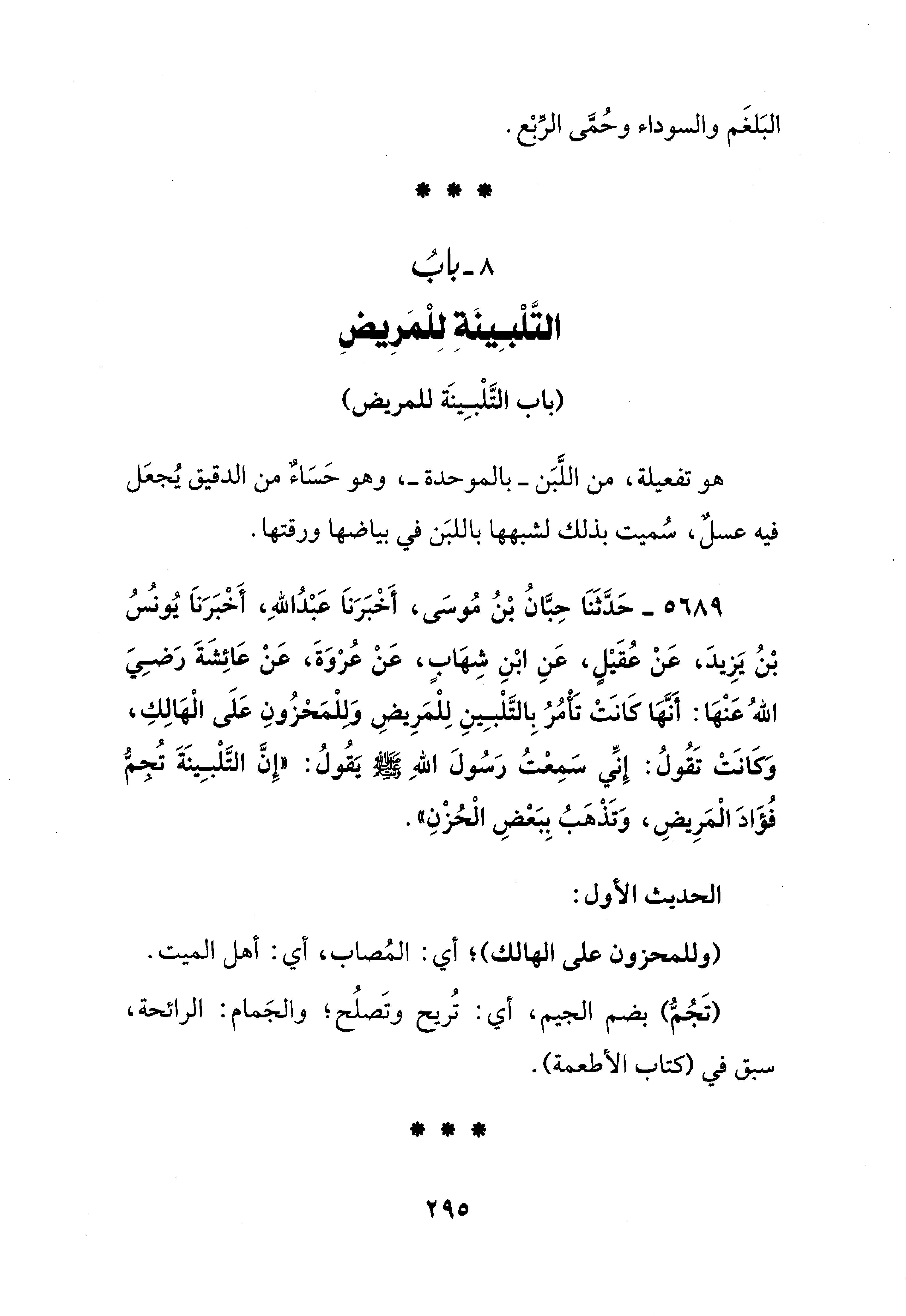 8 - بابُ التَّلْبِينَةِ لِلْمَرِيضِ