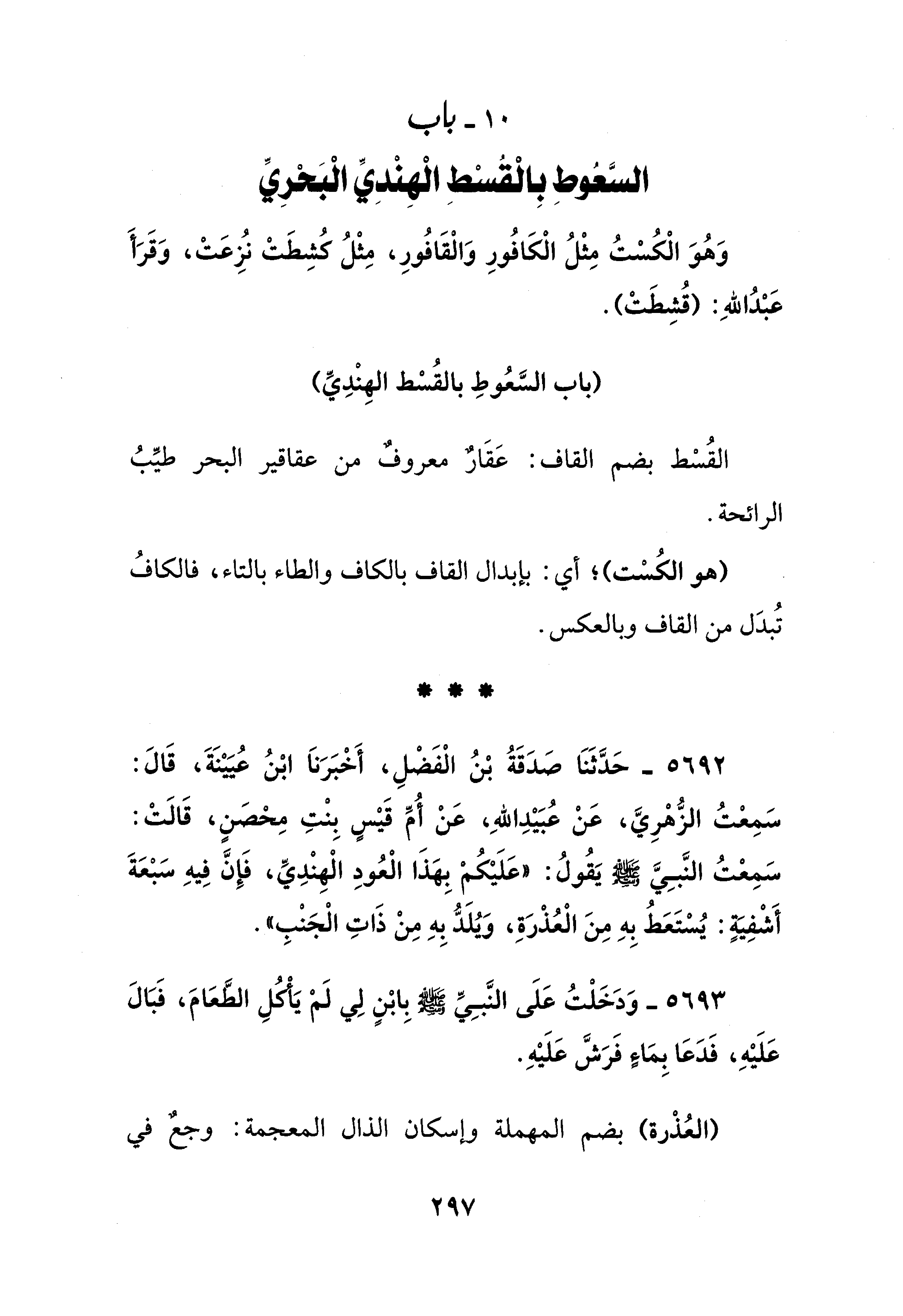 10 - باب السَّعُوط بِالْقسْطِ الْهِنْدِي الْبَحري