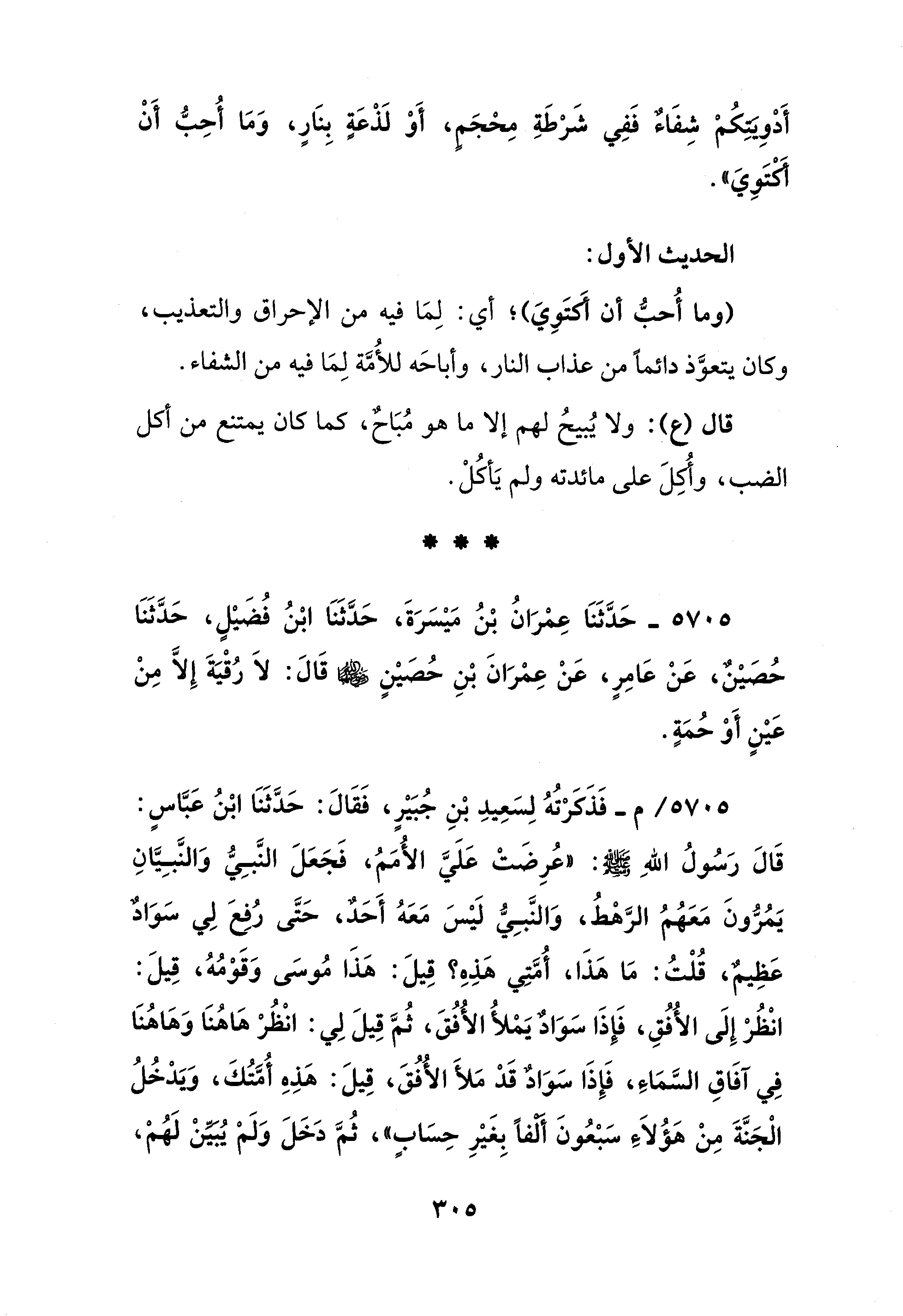 أَدْوِيتكُمْ شِفَاءٌ فَفِي شَرْطَةِ مِحْجَمٍ، أَوْ لَذْعَةٍ بِنَارٍ، وَمَا أحِبُّ أَنْ أكتَوِيَ".