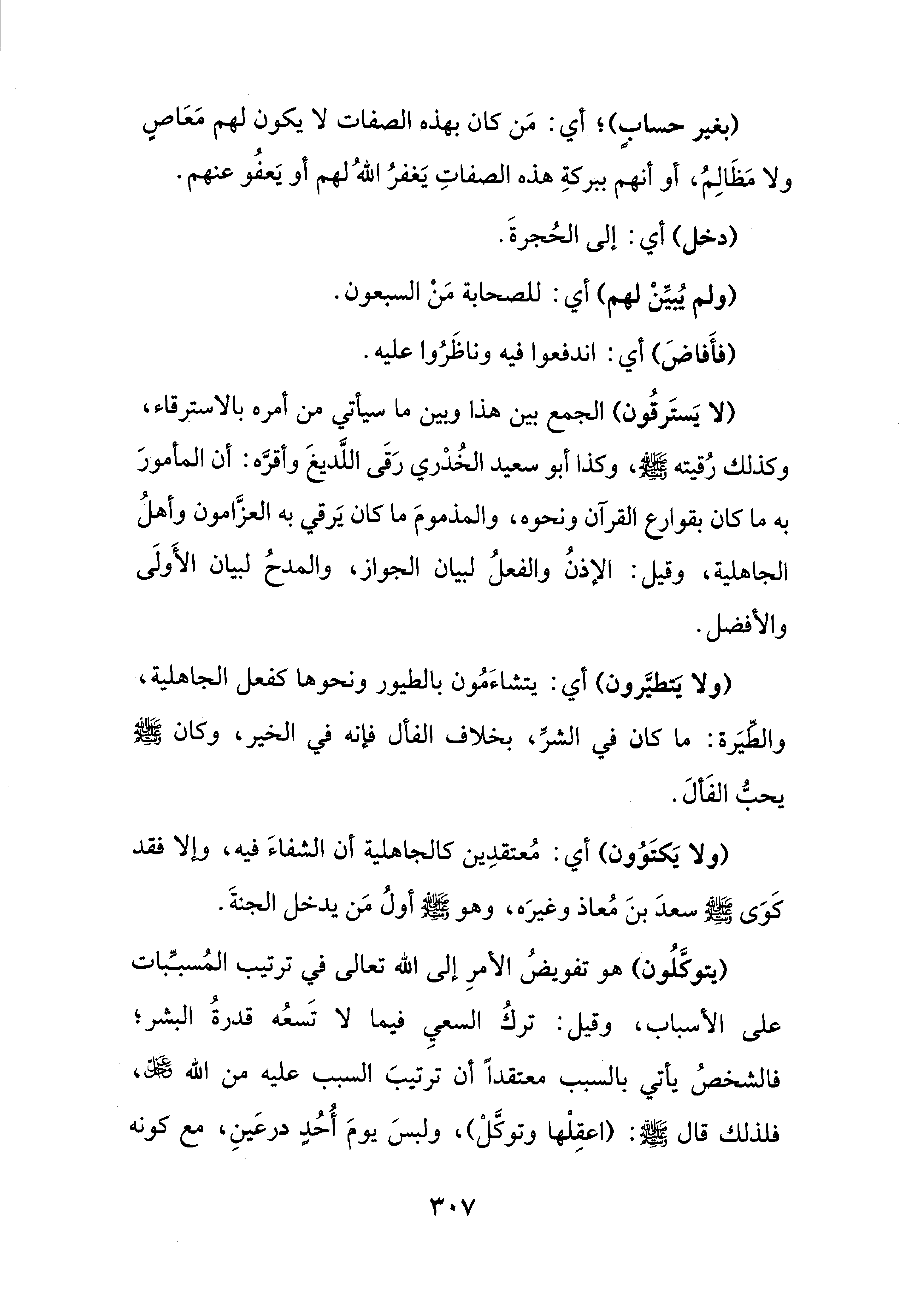 (ولا يَكتَوُون) أي: مُعتقدِين كالجاهلية أن الشفاءَ فيه، وإلا فقد كَوَى - صلى الله عليه وسلم - سعدَ بنَ مُعاذ وغيرَه، وهو - صلى الله عليه وسلم - أولُ مَن يدخل الجنةَ.