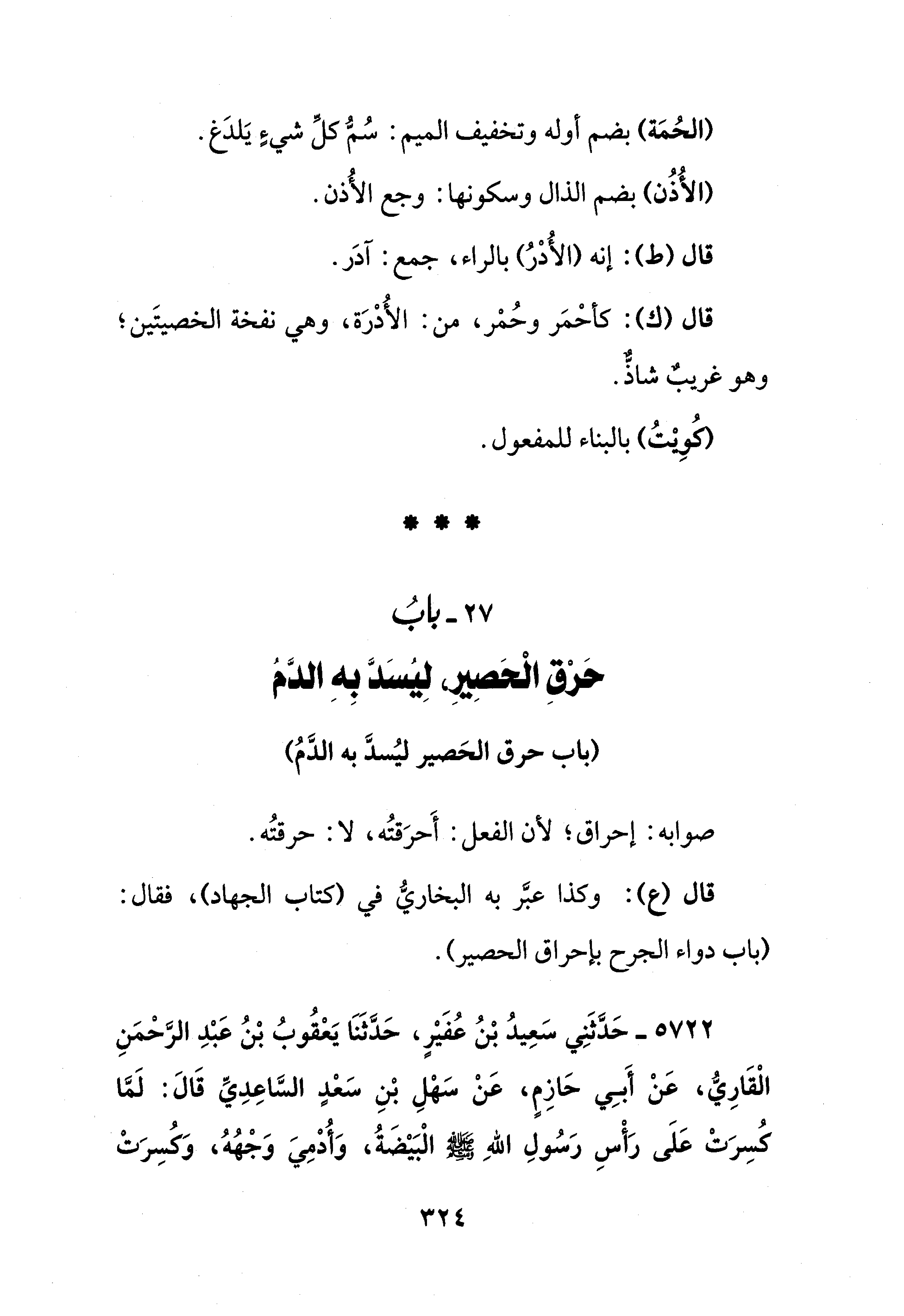 27 - بابُ حَرْقِ الْحصِير، لِيُسَدَّ بِهِ الدَّم