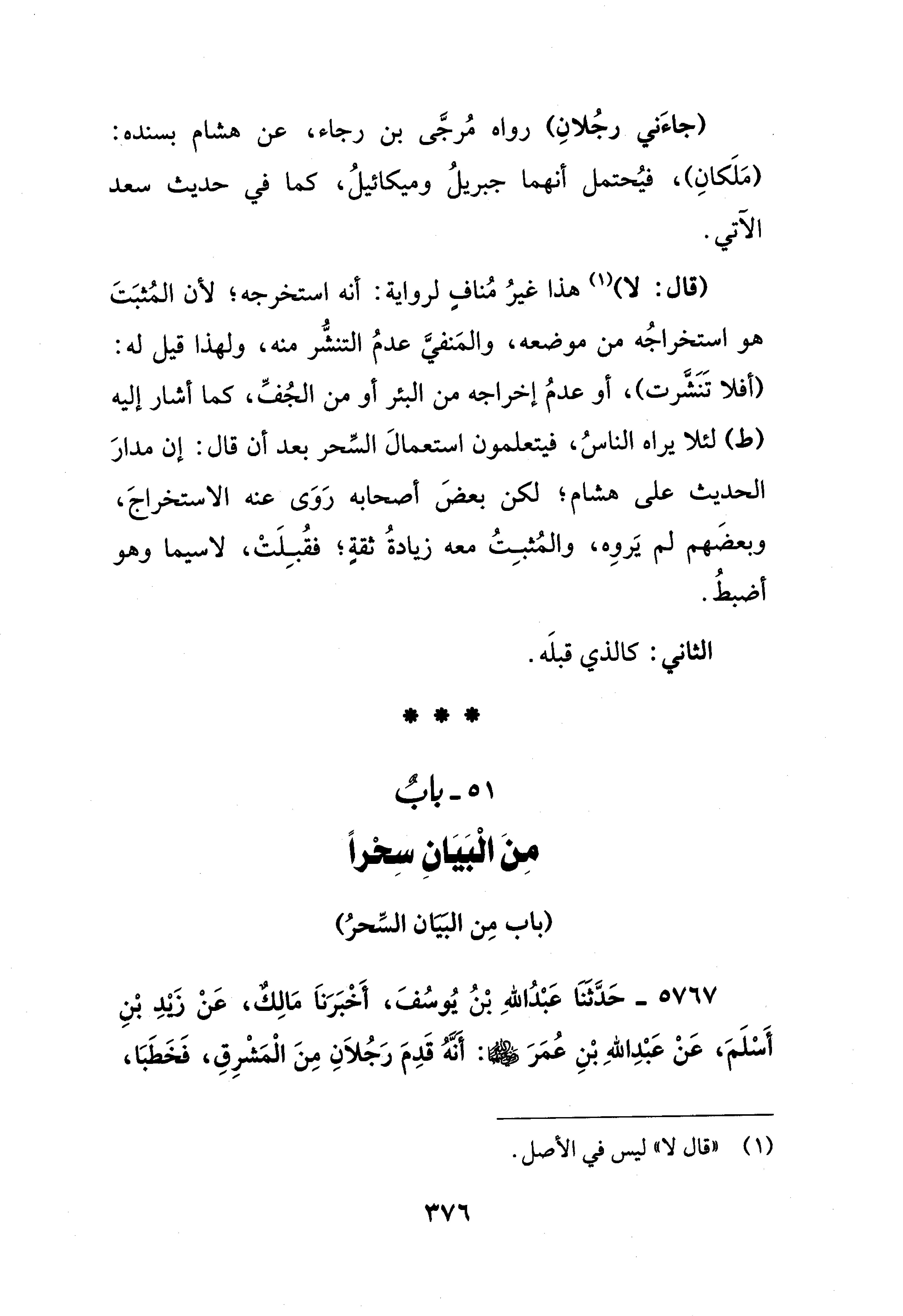 (جاءَني رجُلانِ) رواه مُرجَّى بن رجاء، عن هشام بسنده: (مَلَكانِ)، فيُحتمل أنهما جبريلُ وميكائيلُ، كما في حديث سعد الآتي.