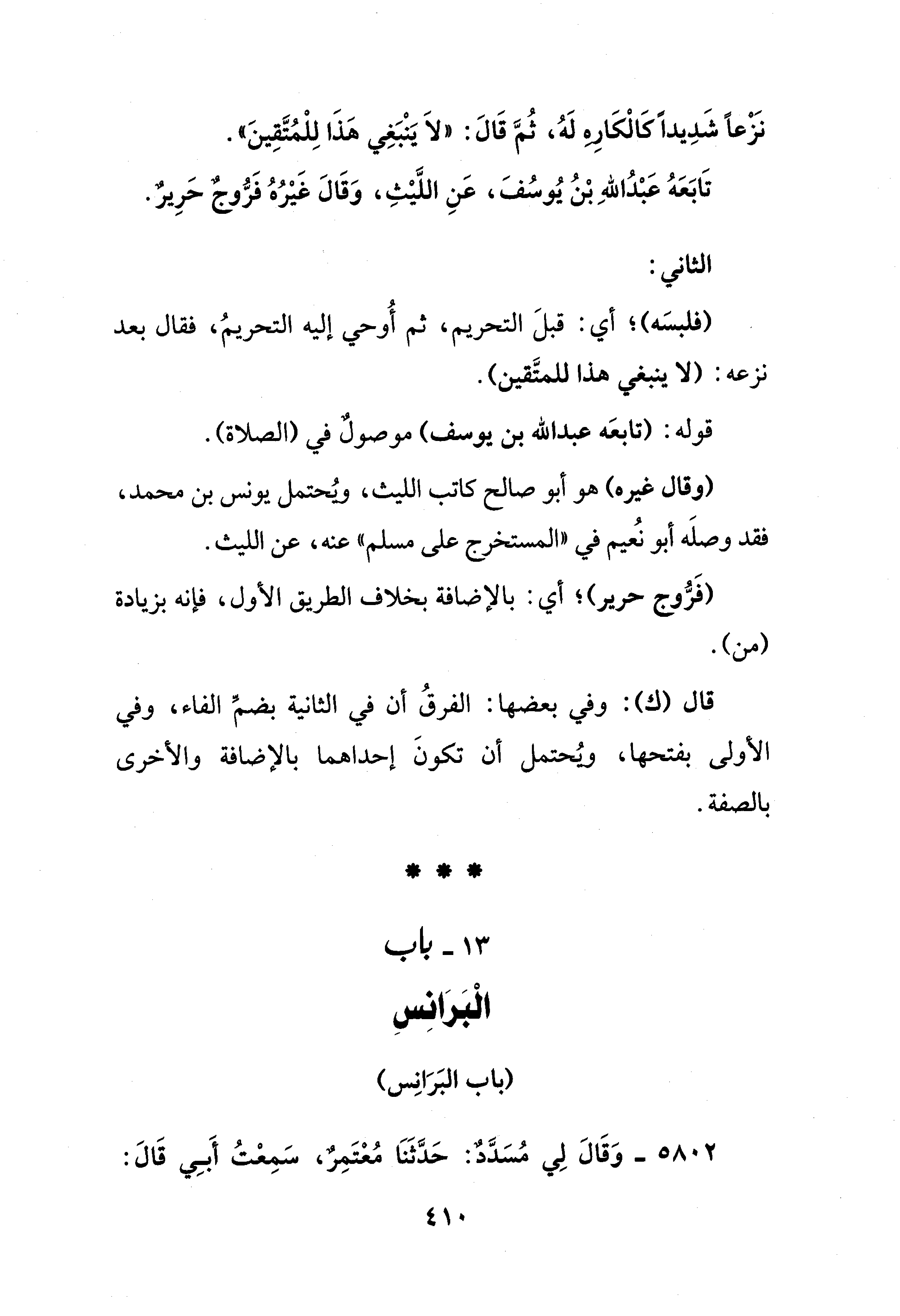 تَابَعَهُ عَبْدُ اللهِ بْنُ يُوسُفَ، عَنِ اللَّيْثِ، وَقَالَ غيرُهُ فَرُّوجٌ حَرِيرٌ.