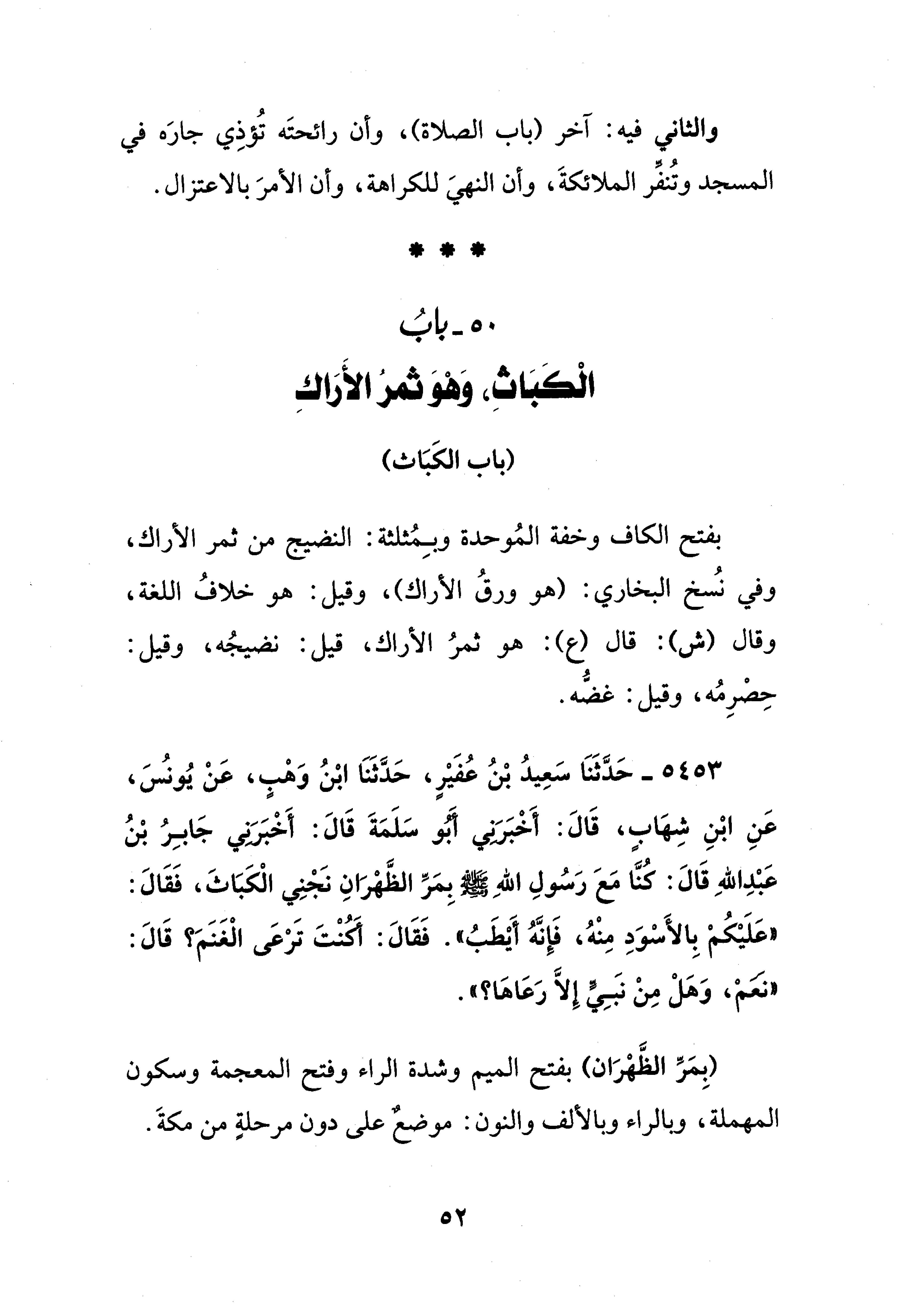 50 - بابُ الْكَبَاثِ، وَهْوَ ثمرُ الأَرَاكِ