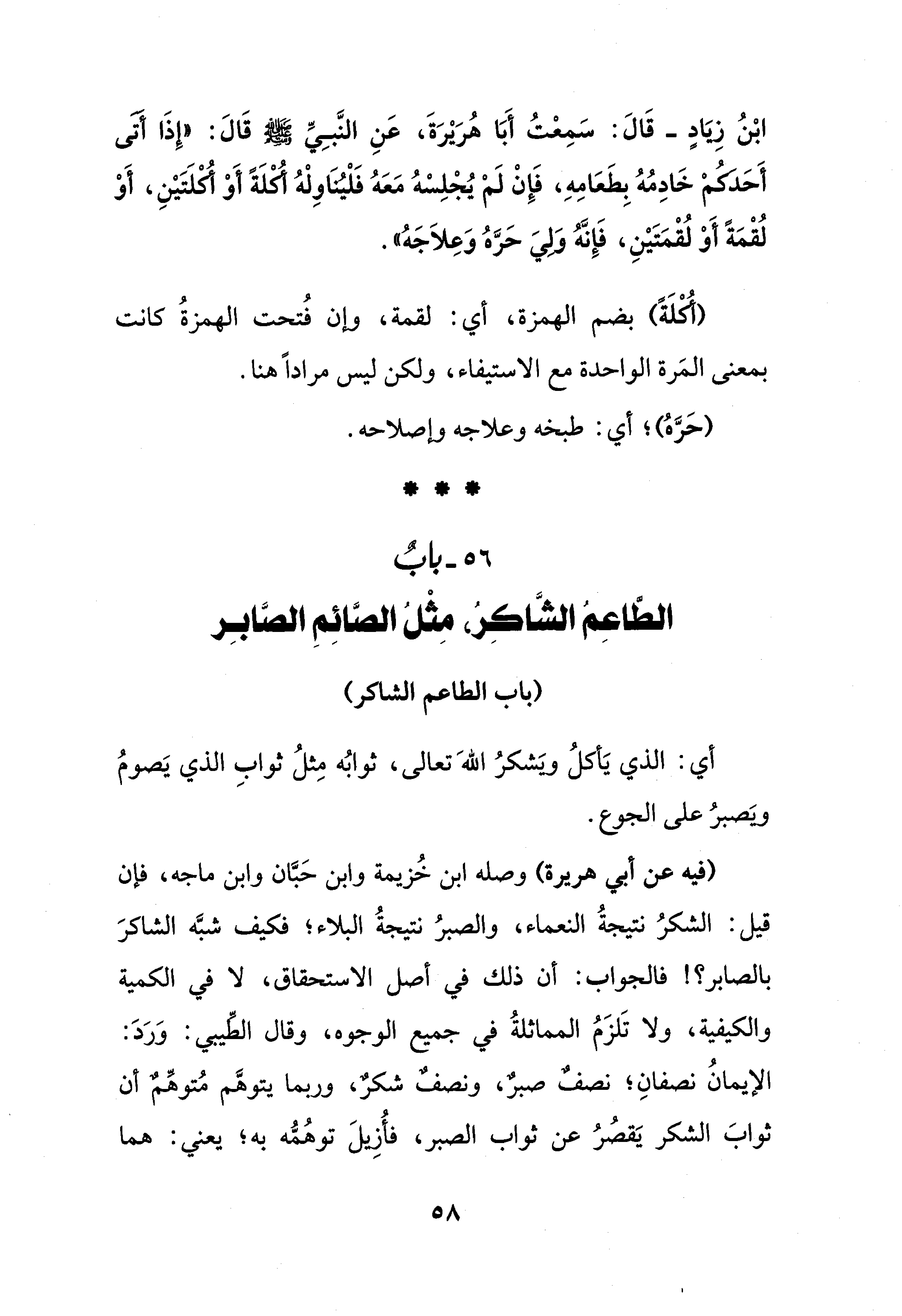 56 - بابٌ الطَّاعِمُ الشَّاكِرُ، مِثْلُ الصَّائِمِ الصَّابِر