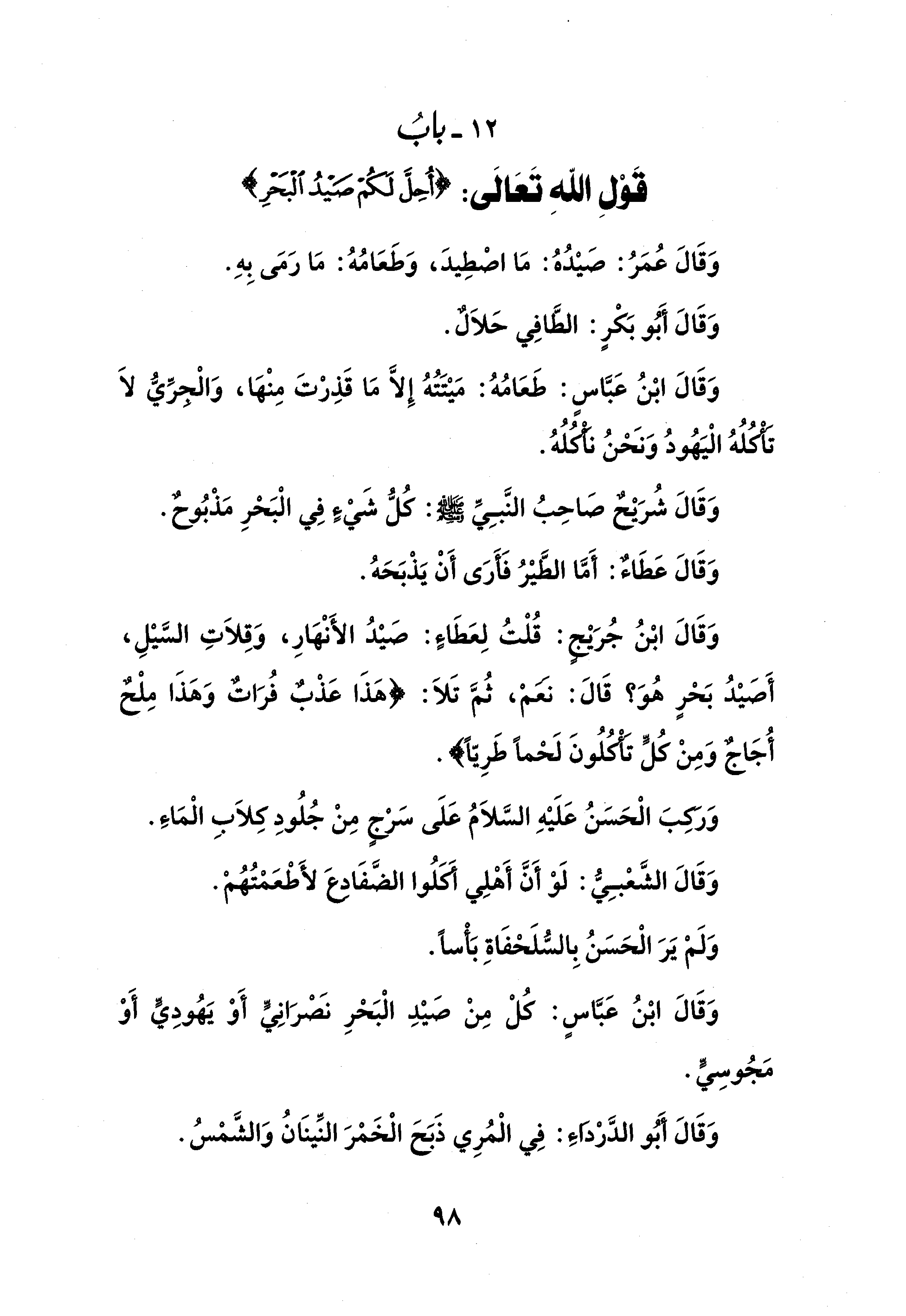 12 - بابُ قَوْلِ الله تَعَالَى: {أُحِلَّ لَكُمْ صَيْدُ الْبَحْرِ}