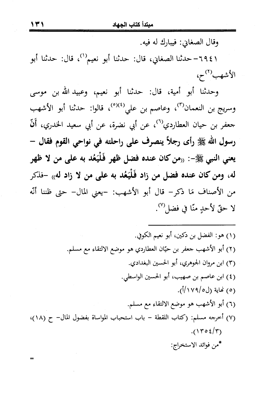 (¬7) أخرجه مسلم: (كتاب اللقطة -باب استحباب المواساة بفضول المال- ح (18)، (3/ 1354).