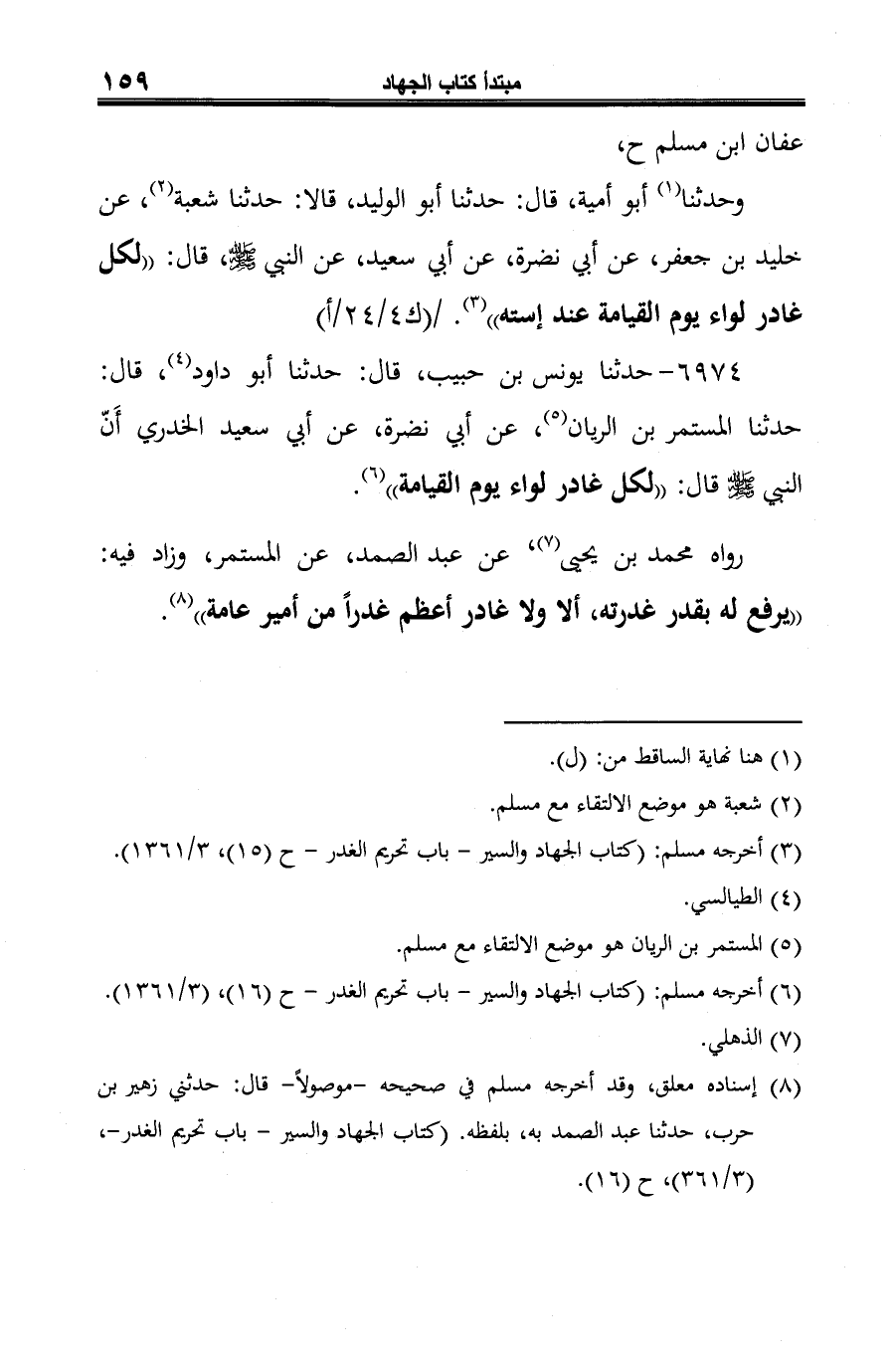 (¬3) أخرجه مسلم: (كتاب الجهاد والسير -باب تحريم الغدر - ح (16)، (3/ 1361).