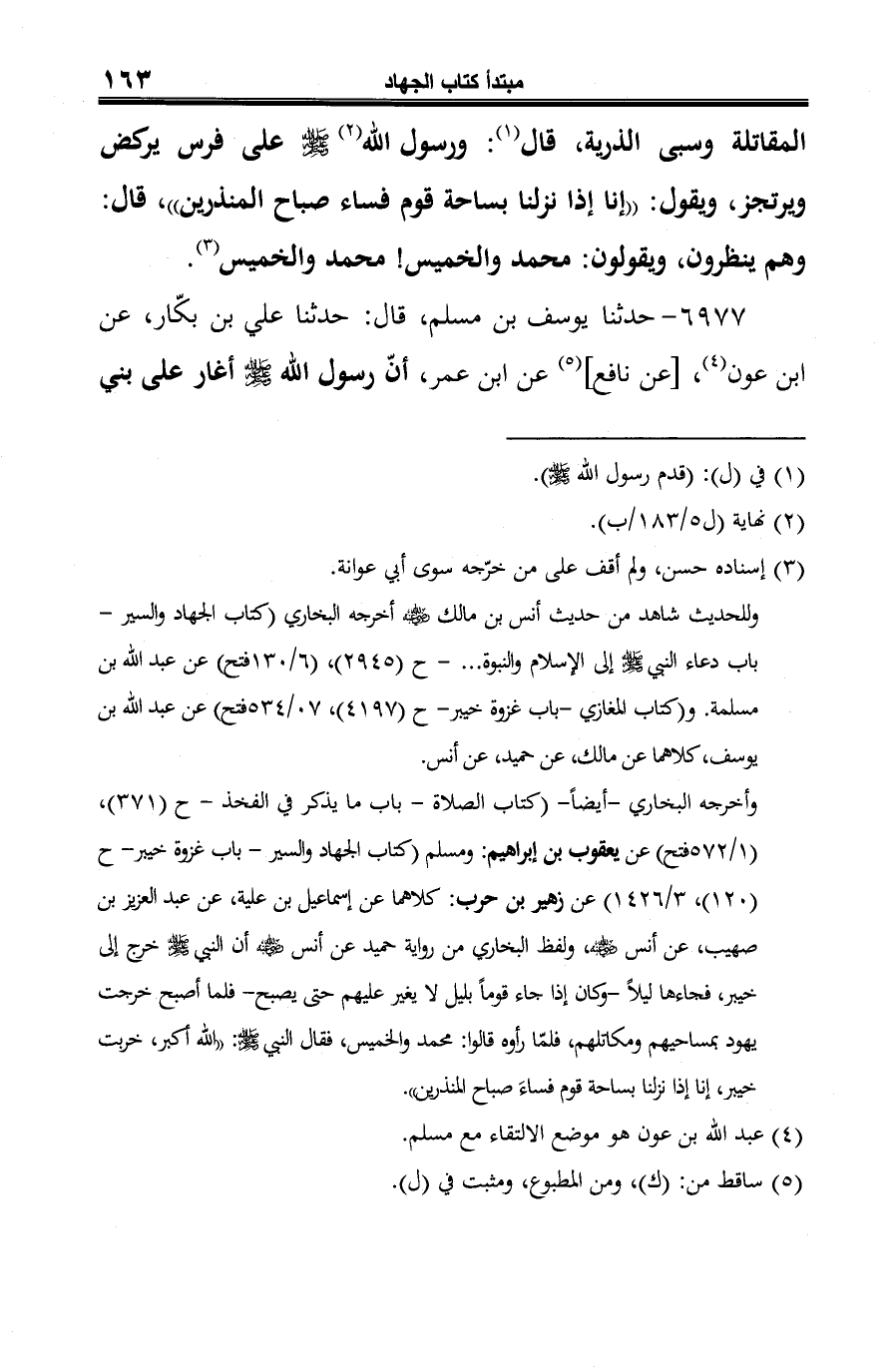 (¬3) أخرجه مسلم: كتاب الجهاد والسير -باب جواز الإغارة على الكفار الذين بلغتهم دعوة الإسلام من غير تقدّم الإعلام بالإغارة - ح (1)، (3/ 1356).