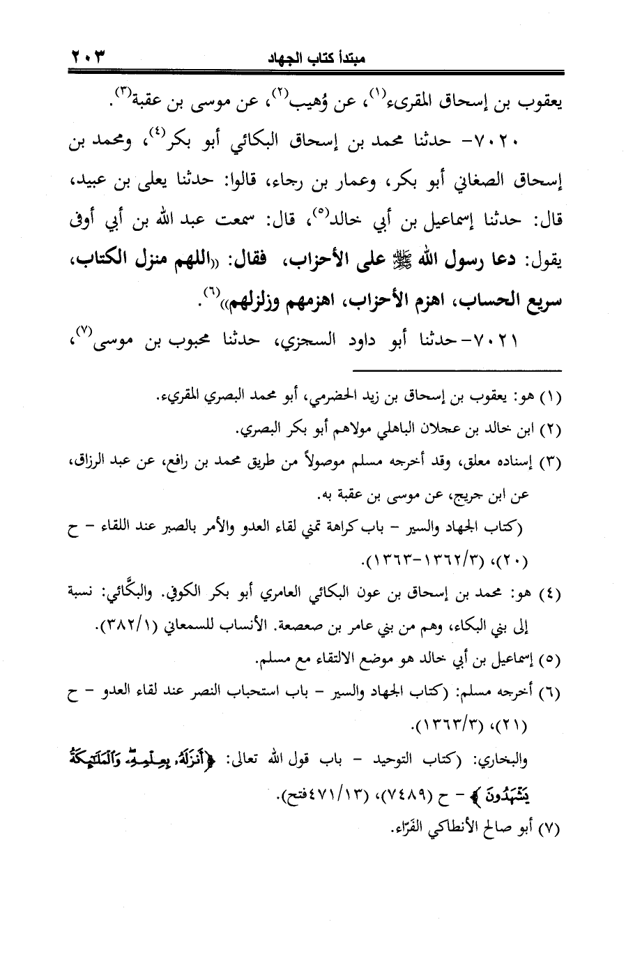-[204]- حدّثنا أبو إسحاق الفزاري (¬2) -حدثني ابن جريج، عن موسى بن عقبة- الّذي تقدّم بمثله - (¬3) قال: "واهزمهم وانصرنا عليهم".