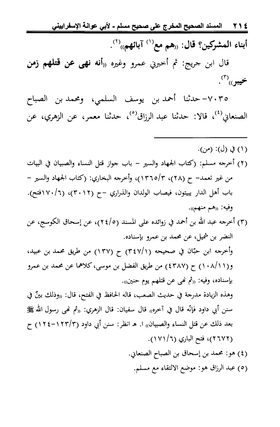 (¬4) أخرجه مسلم: (كتاب الجهاد والسير -باب جواز قتل النساء والصبيان في البيات من غير تعمد - ح (27)، (3/ 1365)، وأخرجه البخاري -كما تقدم في الحديث رقم (7034).