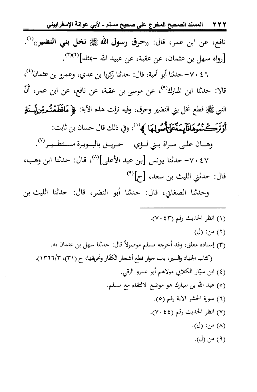 (¬9) أخرجه مسلم: (كتاب الجهاد والسير -باب جواز قطع أشجار الكفار وتحريقها - ح (29)، (3/ 1365). والبخاري -كما تقدم في حديث رقم (7043) -.