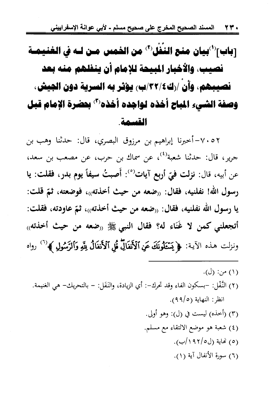 (¬4) أخرجه مسلم: (كتاب الجهاد والسير -باب الأنفال - ح (34)، 3/ 1367 - 1368).