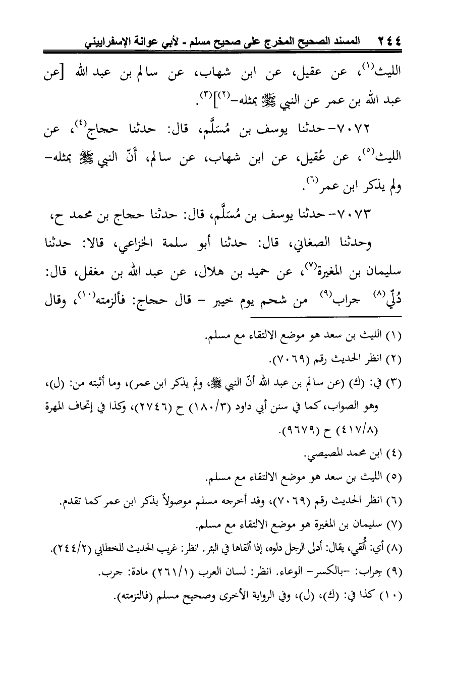 (¬2) الليث بن سعد هو موضع الالتقاء مع مسلم.