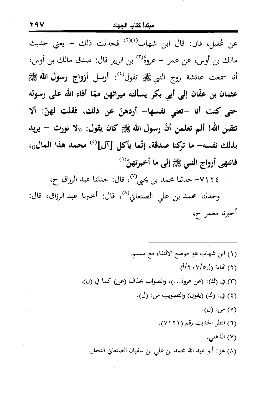 (¬3) عبد الرزاق هو موضع الالتقاء مع مسلم. في الأسانيد الثلاثة.