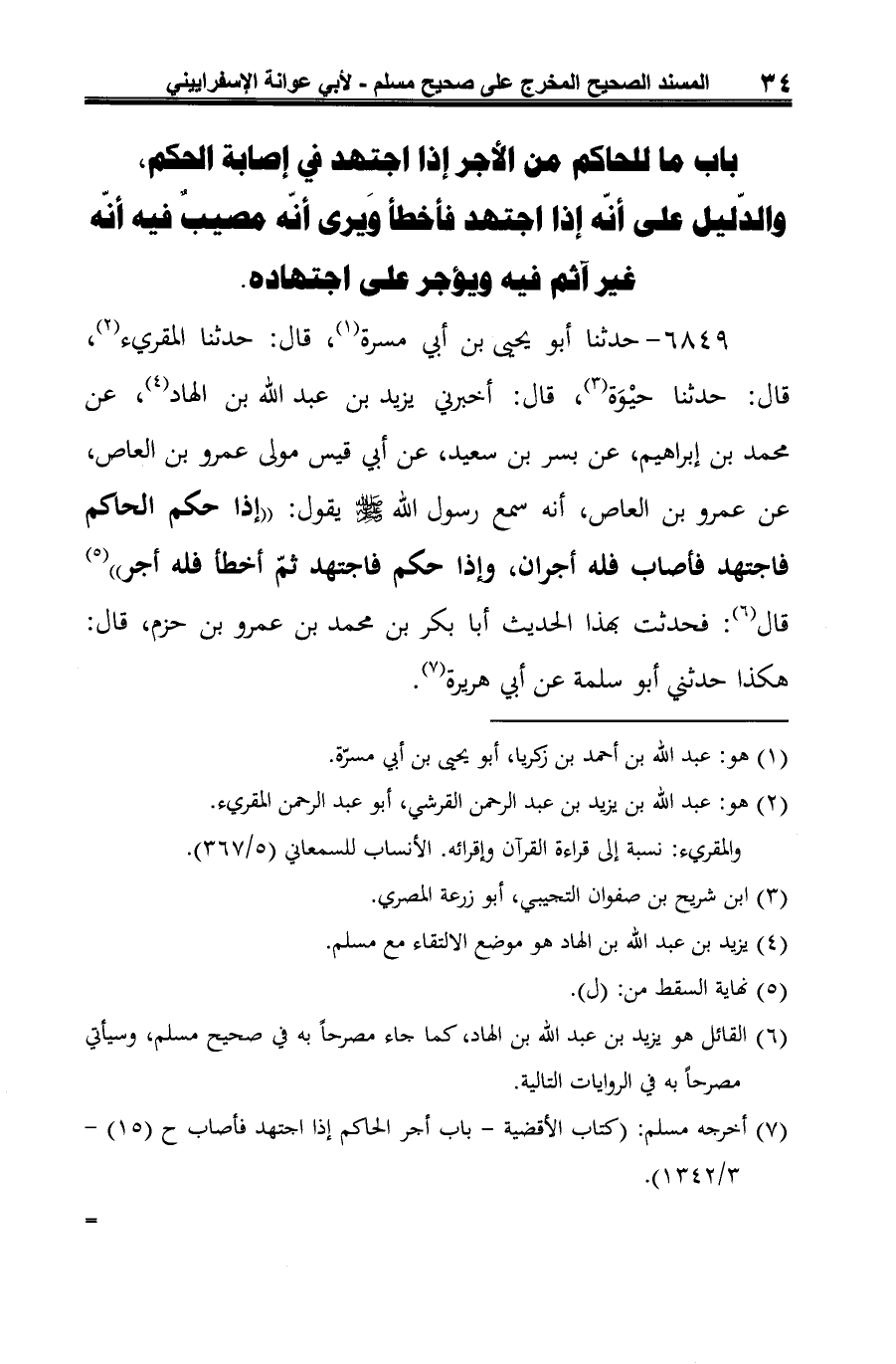 (¬7) أخرجه مسلم: (كتاب الأقضية -باب أجر الحاكم إذا اجتهد فأصاب ح (15) - 3/ 1342). =