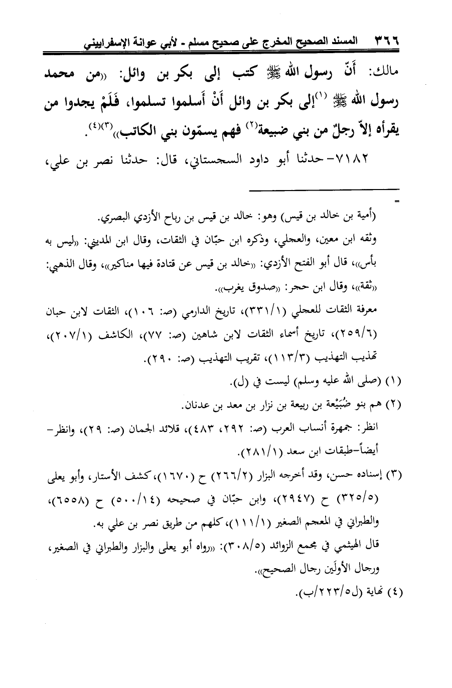 7182 - حدثنا أبو داود السجستاني، قال: حدثنا نصر بن علي،
