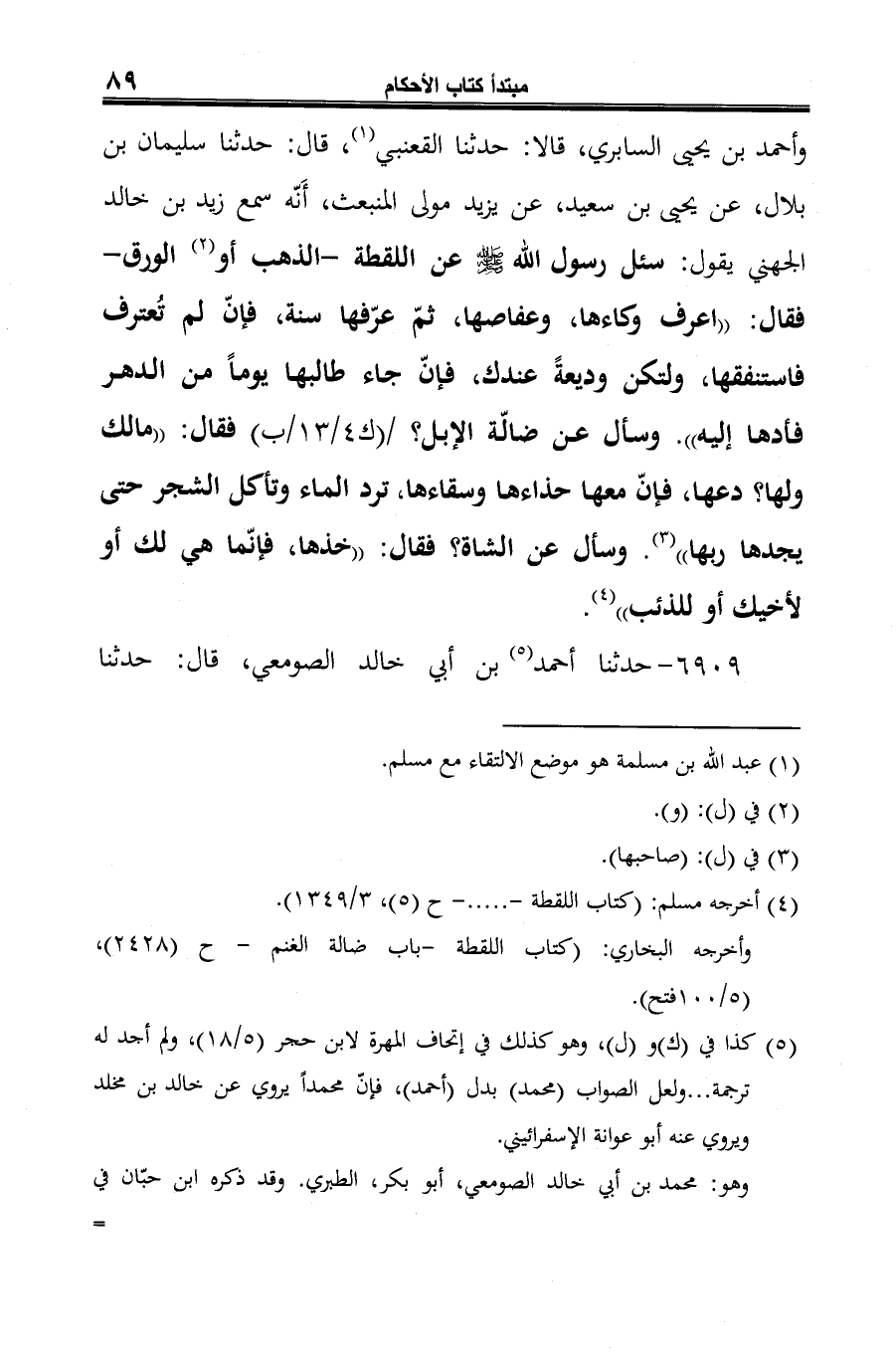(¬1) كذا في (ك) و (ل)، وهو كذلك في إتحاف المهرة لابن حجر (5/ 18)، ولم أجد له ترجمة ... ولعل الصواب (محمد) بدل (أحمد)، فإنّ محمدًا يروي عن خالد بن مخلد ويروي عنه أبو عوانة الإسفرائيني.