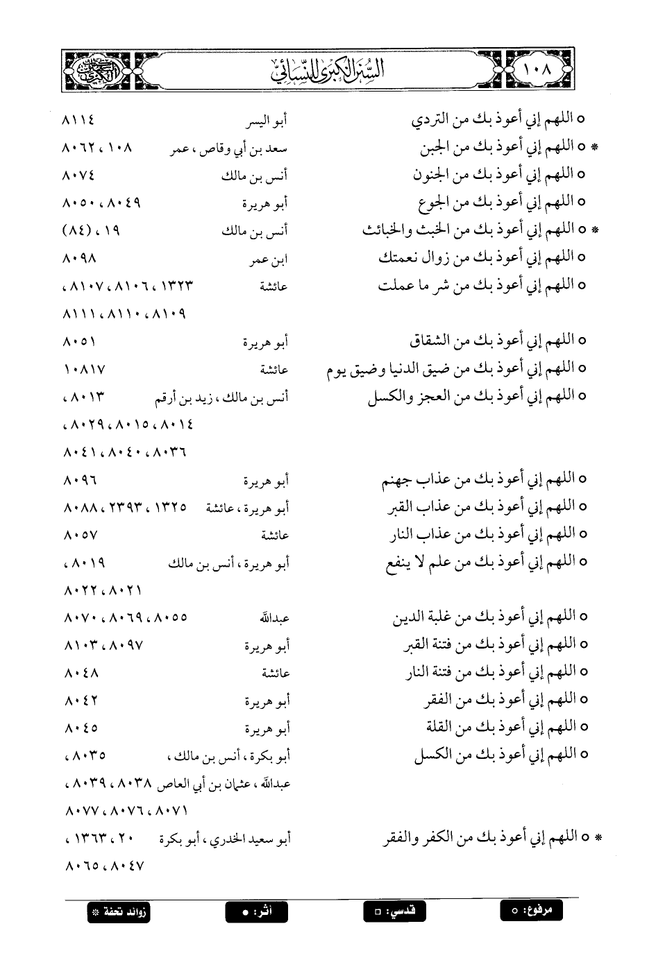 108 - حديث: كان سعد يعلم بنيه هؤلاء الكلمات ويقول: كان النبي صلى الله عليه وسلم يتعوذ بهن دبر الصلاة: «اللهم إني أعوذ بك من الجبن ... » الحديث.