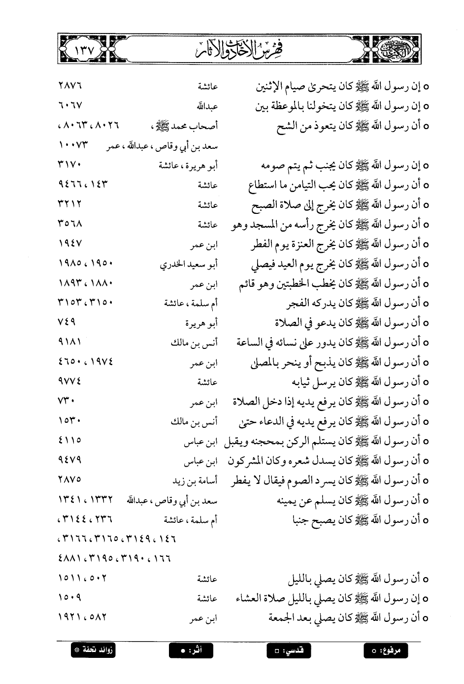 137 - حديث: كنا مع النبي في سفر، فكنا إذا أشرفنا على واد هللنا وكبرنا، فقال: «اربعوا على أنفسكم ... » الحديث. وحديث عثمان بن غياث مختصر: «ألا أدلك على كلمة من كنوز الجنة؟ لا حول ولا قوة إلا بالله». ولم يذكر أول الحديث. وكذلك حديث (سي) عن محمد بن عبد الأعلى.