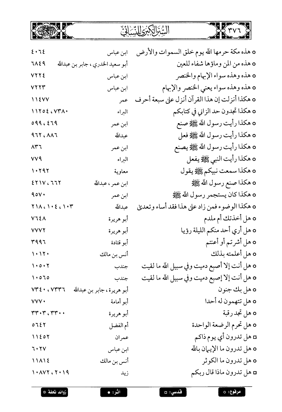 376 - حديث: قال لي العداء بن خالد: ألا أقرئك كتابا كتبه لي رسول الله صلى الله عليه وسلم؟ قال: قلت: بلى، فأخرج لي كتابا: هذا ما اشترى العداء بن خالد بن هوذة من محمد صلى الله عليه وسلم ... الحديث.