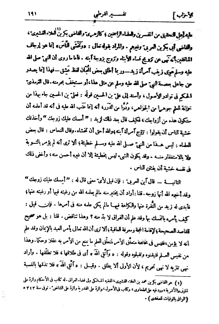 عَلَيْهِ أَهْلُ التَّحْقِيقِ مِنَ الْمُفَسِّرِينَ وَالْعُلَمَاءِ الرَّاسِخِينَ، كَالزُّهْرِيِّ وَالْقَاضِي بَكْرِ بْنِ الْعَلَاءِ «١» الْقُشَيْرِيِّ، وَالْقَاضِي أبي بكر بن الْعَرَبِيِّ وَغَيْرِهِمْ. وَالْمُرَادُ بِقَوْلِهِ تَعَالَى:" وَتَخْشَى النَّاسَ" إِنَّمَا هُوَ إِرْجَافُ الْمُنَافِقِينَ بِأَنَّهُ نَهَى عَنْ تَزْوِيجِ نِسَاءِ الْأَبْنَاءِ وَتَزَوَّجَ بِزَوْجَةِ ابْنِهِ. فَأَمَّا مَا رُوِيَ أَنَّ النَّبِيَّ صَلَّى اللَّهُ عَلَيْهِ وَسَلَّمَ هَوِيَ زَيْنَبَ امْرَأَةَ زَيْدٍ وَرُبَّمَا أَطْلَقَ بَعْضُ الْمُجَّانِ لَفْظَ عَشِقَ فَهَذَا إِنَّمَا يَصْدُرُ عَنْ جَاهِلٍ بِعِصْمَةِ النَّبِيُّ صَلَّى اللَّهُ عَلَيْهِ وَسَلَّمَ عَنْ مِثْلِ هَذَا، أَوْ مُسْتَخِفٍّ بِحُرْمَتِهِ. قَالَ التِّرْمِذِيُّ الْحَكِيمُ فِي نَوَادِرَ الْأُصُولِ، وَأَسْنَدَ إِلَى عَلِيِّ بْنِ الْحُسَيْنِ قَوْلَهُ: فَعَلِيُّ بْنُ الْحُسَيْنِ جَاءَ بِهَذَا مِنْ خِزَانَةِ الْعِلْمِ جَوْهَرًا مِنَ الْجَوَاهِرِ، وَدُرًّا مِنَ الدُّرَرِ، أَنَّهُ إِنَّمَا عَتَبَ اللَّهُ عَلَيْهِ فِي أَنَّهُ قَدْ أَعْلَمَهُ أَنْ سَتَكُونُ هَذِهِ مِنْ أَزْوَاجِكَ، فَكَيْفَ قَالَ بَعْدَ ذَلِكَ لِزَيْدٍ: (أَمْسِكْ عَلَيْكَ زَوْجَكَ) وَأَخَذَتْكَ خَشْيَةُ النَّاسِ أَنْ يَقُولُوا: تَزَوَّجَ امْرَأَةَ ابْنِهِ، وَاللَّهُ أَحَقُّ أَنْ تَخْشَاهُ. وَقَالَ النَّحَّاسُ: قَالَ بَعْضُ الْعُلَمَاءِ: لَيْسَ هَذَا مِنَ النَّبِيِّ صَلَّى اللَّهُ عَلَيْهِ وَسَلَّمَ خَطِيئَةً، أَلَا تَرَى أَنَّهُ لَمْ يُؤْمَرْ بِالتَّوْبَةِ وَلَا بِالِاسْتِغْفَارِ مِنْهُ. وَقَدْ يَكُونُ الشَّيْءُ لَيْسَ بِخَطِيئَةٍ إِلَّا أَنَّ غَيْرَهُ أَحْسَنُ مِنْهُ، وَأَخْفَى ذَلِكَ فِي نَفْسِهِ خَشْيَةَ أَنْ يُفْتَتَنَ النَّاسُ. الثَّانِيَةُ: قَالَ ابْنُ الْعَرَبِيِّ: فَإِنْ قِيلَ لِأَيِّ مَعْنًى قَالَ لَهُ: (أَمْسِكْ، عَلَيْكَ زَوْجَكَ) وَقَدْ أَخْبَرَهُ اللَّهُ أَنَّهَا زَوْجُهُ. قُلْنَا: أَرَادَ أَنْ يَخْتَبِرَ مِنْهُ مَا لَمْ يُعْلِمْهُ اللَّهُ مِنْ رَغْبَتِهِ فِيهَا أَوْ رَغْبَتِهِ عَنْهَا، فَأَبْدَى لَهُ زَيْدٌ مِنَ النُّفْرَةِ عَنْهَا وَالْكَرَاهَةِ فِيهَا مَا لَمْ يَكُنْ عَلِمَهُ مِنْهُ فِي أَمْرِهَا. فَإِنْ قِيلَ: كَيْفَ، يَأْمُرُهُ بِالتَّمَسُّكِ بِهَا وَقَدْ عَلِمَ أَنَّ الْفِرَاقَ لَا بُدَّ مِنْهُ؟ وَهَذَا تَنَاقُضٌ. قُلْنَا: بَلْ هُوَ صَحِيحٌ لِلْمَقَاصِدِ الصَّحِيحَةِ، لِإِقَامَةِ الْحُجَّةِ وَمَعْرِفَةِ الْعَاقِبَةِ، أَلَا تَرَى أَنَّ اللَّهَ تَعَالَى يَأْمُرُ الْعَبْدَ بِالْإِيمَانِ وَقَدْ عَلِمَ أَنَّهُ لَا يُؤْمِنُ، فَلَيْسَ فِي مُخَالَفَةِ مُتَعَلَّقِ الْأَمْرِ لِمُتَعَلَّقِ الْعِلْمِ مَا يَمْنَعُ مِنَ الْأَمْرِ بِهِ عَقْلًا وَحُكْمًا. وَهَذَا مِنْ نَفِيسِ الْعِلْمِ فَتَيَقَّنُوهُ وَتَقَبَّلُوهُ وَقَوْلُهُ:" وَاتَّقِ اللَّهَ" أَيْ فِي طَلَاقِهَا، فَلَا تُطَلِّقْهَا. وَأَرَادَ نَهْيَ تَنْزِيهٍ لَا نَهْيَ تَحْرِيمٍ، لِأَنَّ الْأَوْلَى أَلَّا يُطَلِّقَ. وَقِيلَ:" اتَّقِ اللَّهَ" فَلَا تَذُمَّهَا بِالنِّسْبَةِ