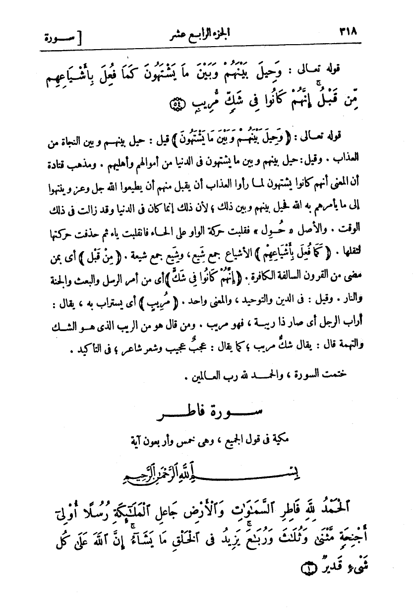 بِسْمِ اللَّهِ الرَّحْمنِ الرَّحِيمِ سورة فاطر مكية في قول الجميع وهي خمس وأربعون آية