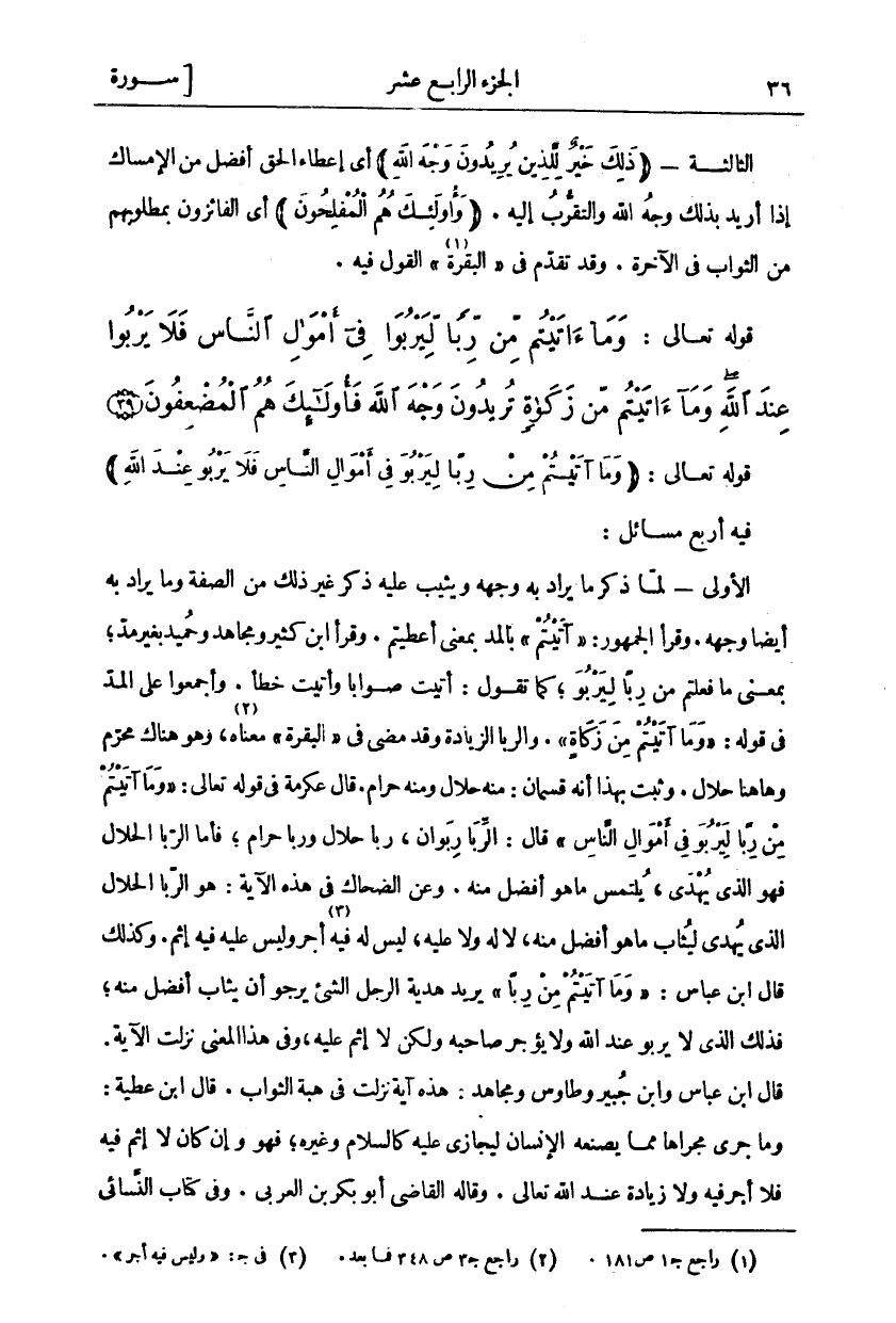 وَما آتَيْتُمْ مِنْ رِباً لِيَرْبُوَا فِي أَمْوالِ النَّاسِ فَلا يَرْبُوا عِنْدَ اللَّهِ وَما آتَيْتُمْ مِنْ زَكاةٍ تُرِيدُونَ وَجْهَ اللَّهِ فَأُولئِكَ هُمُ الْمُضْعِفُونَ (٣٩)