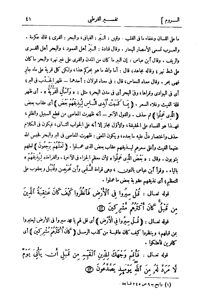 قُلْ سِيرُوا فِي الْأَرْضِ فَانْظُرُوا كَيْفَ كانَ عاقِبَةُ الَّذِينَ مِنْ قَبْلُ كانَ أَكْثَرُهُمْ مُشْرِكِينَ (٤٢)