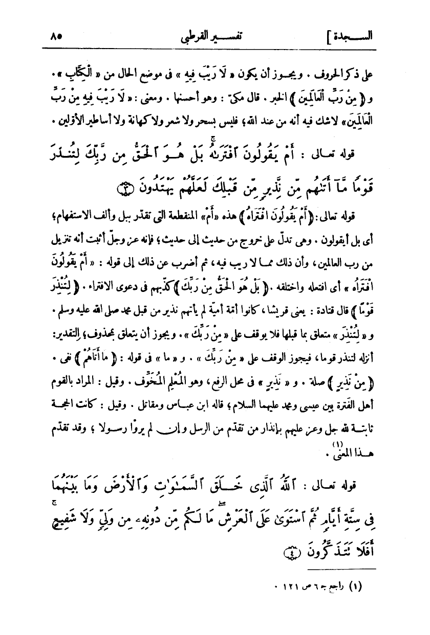 أَمْ يَقُولُونَ افْتَراهُ بَلْ هُوَ الْحَقُّ مِنْ رَبِّكَ لِتُنْذِرَ قَوْماً مَا أَتاهُمْ مِنْ نَذِيرٍ مِنْ قَبْلِكَ لَعَلَّهُمْ يَهْتَدُونَ (٣)