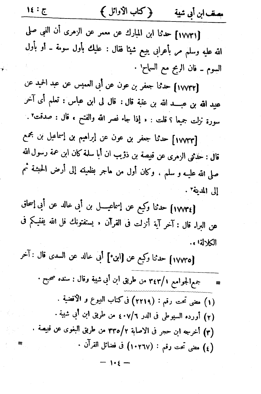 كتاب مصنف ابن أبي شيبة ط السلفية بالهند (اسم الجزء: 14)