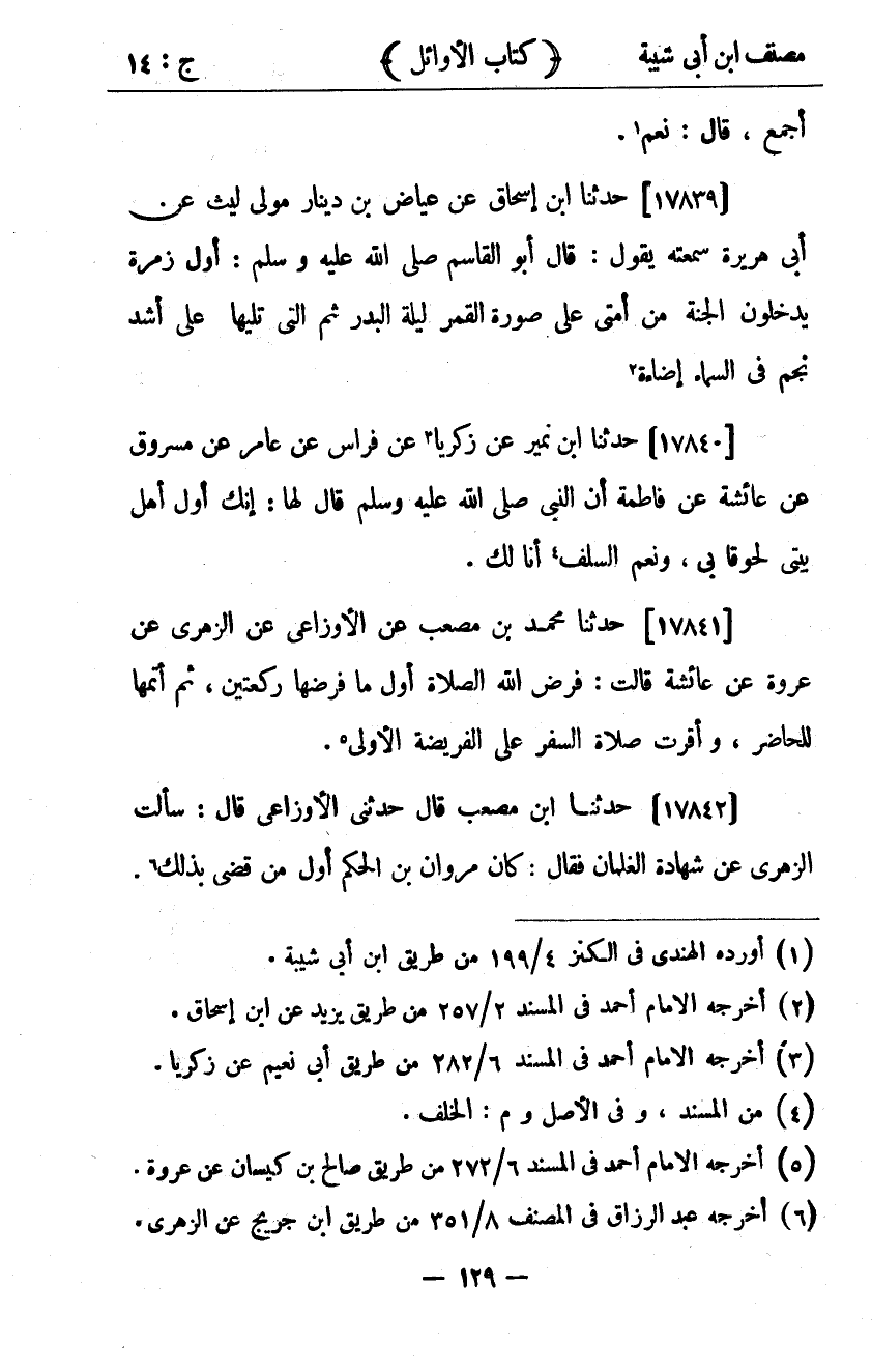 كتاب مصنف ابن أبي شيبة ط السلفية بالهند (اسم الجزء: 14)