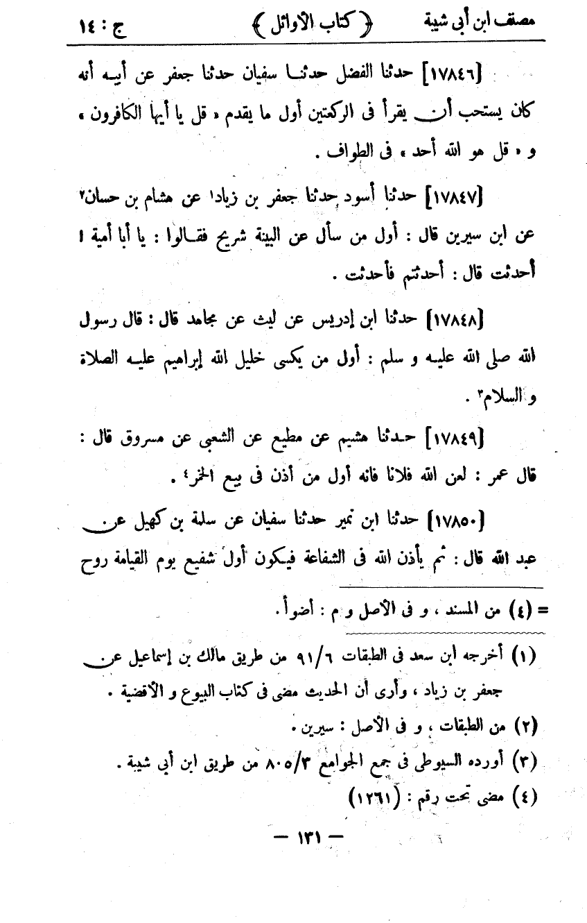 كتاب مصنف ابن أبي شيبة ط السلفية بالهند (اسم الجزء: 14)