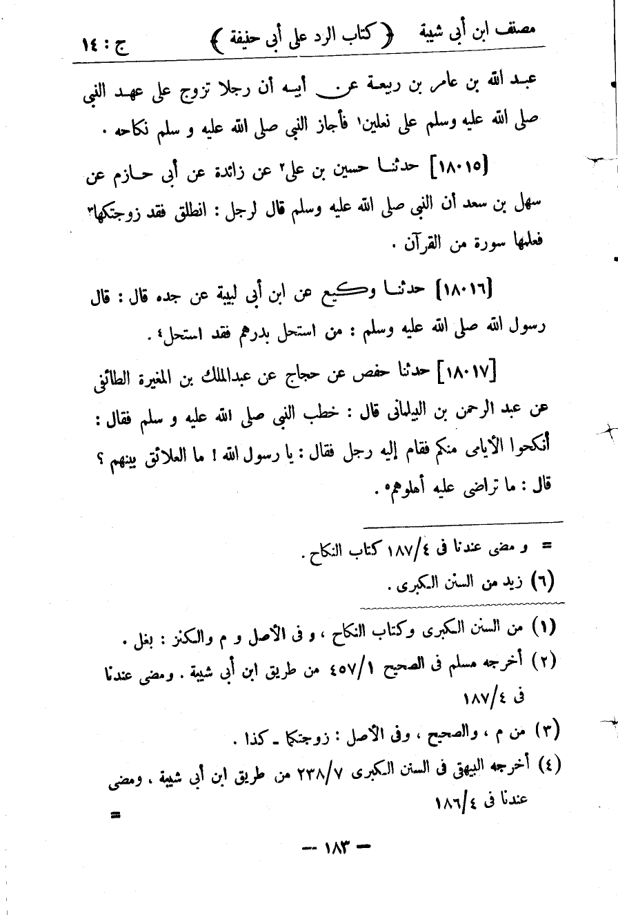 كتاب مصنف ابن أبي شيبة ط السلفية بالهند (اسم الجزء: 14)
