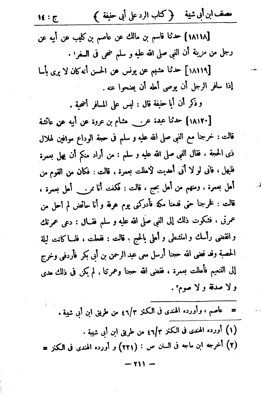 كتاب مصنف ابن أبي شيبة ط السلفية بالهند (اسم الجزء: 14)