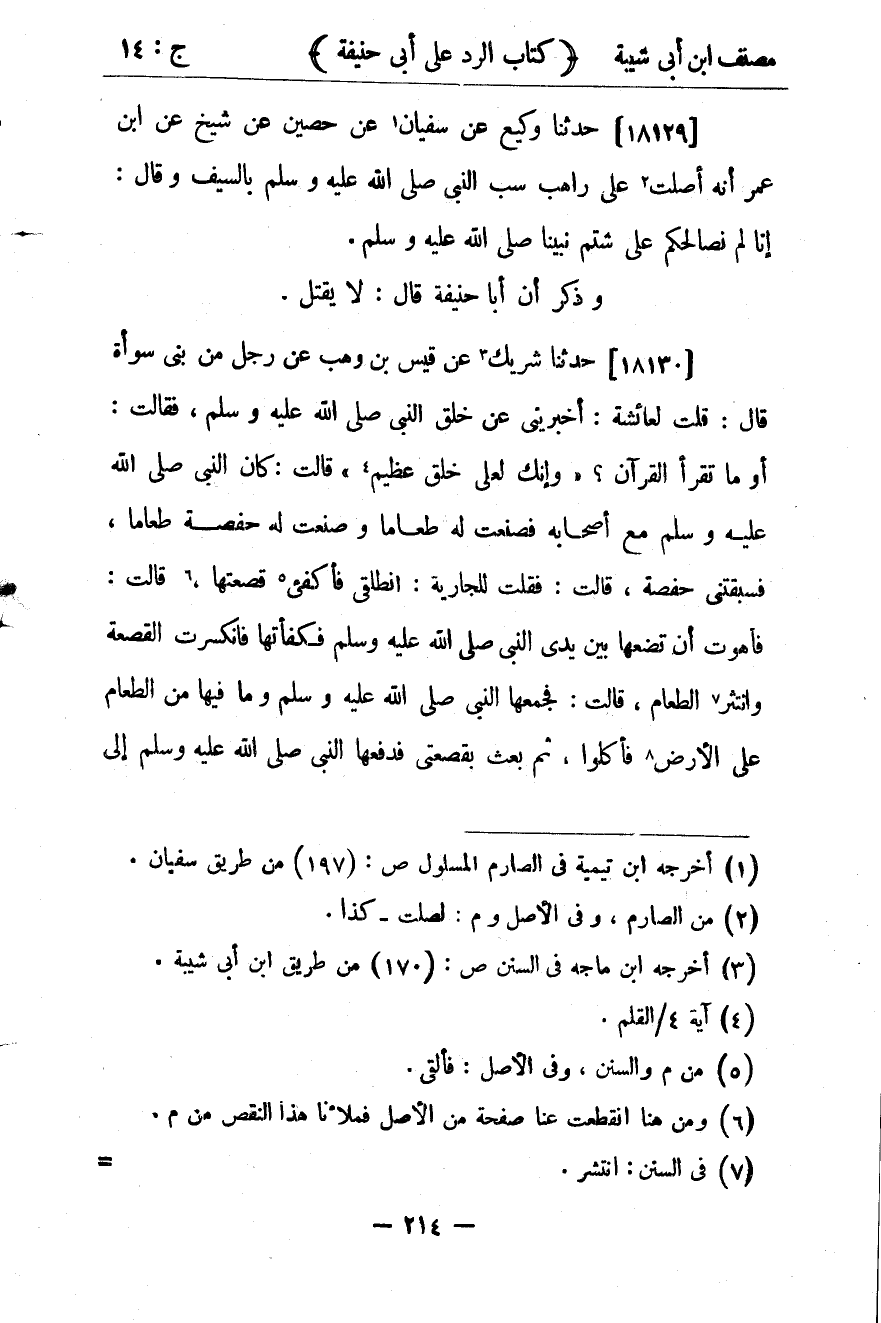 كتاب مصنف ابن أبي شيبة ط السلفية بالهند (اسم الجزء: 14)