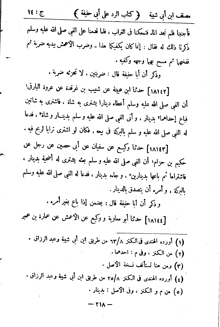 كتاب مصنف ابن أبي شيبة ط السلفية بالهند (اسم الجزء: 14)