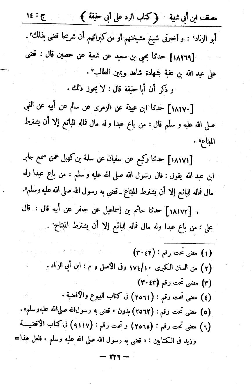 كتاب مصنف ابن أبي شيبة ط السلفية بالهند (اسم الجزء: 14)