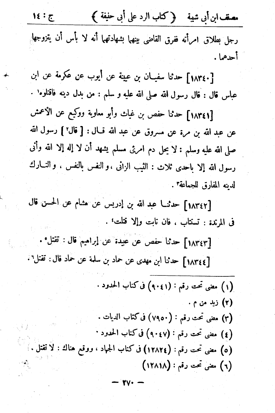 كتاب مصنف ابن أبي شيبة ط السلفية بالهند (اسم الجزء: 14)