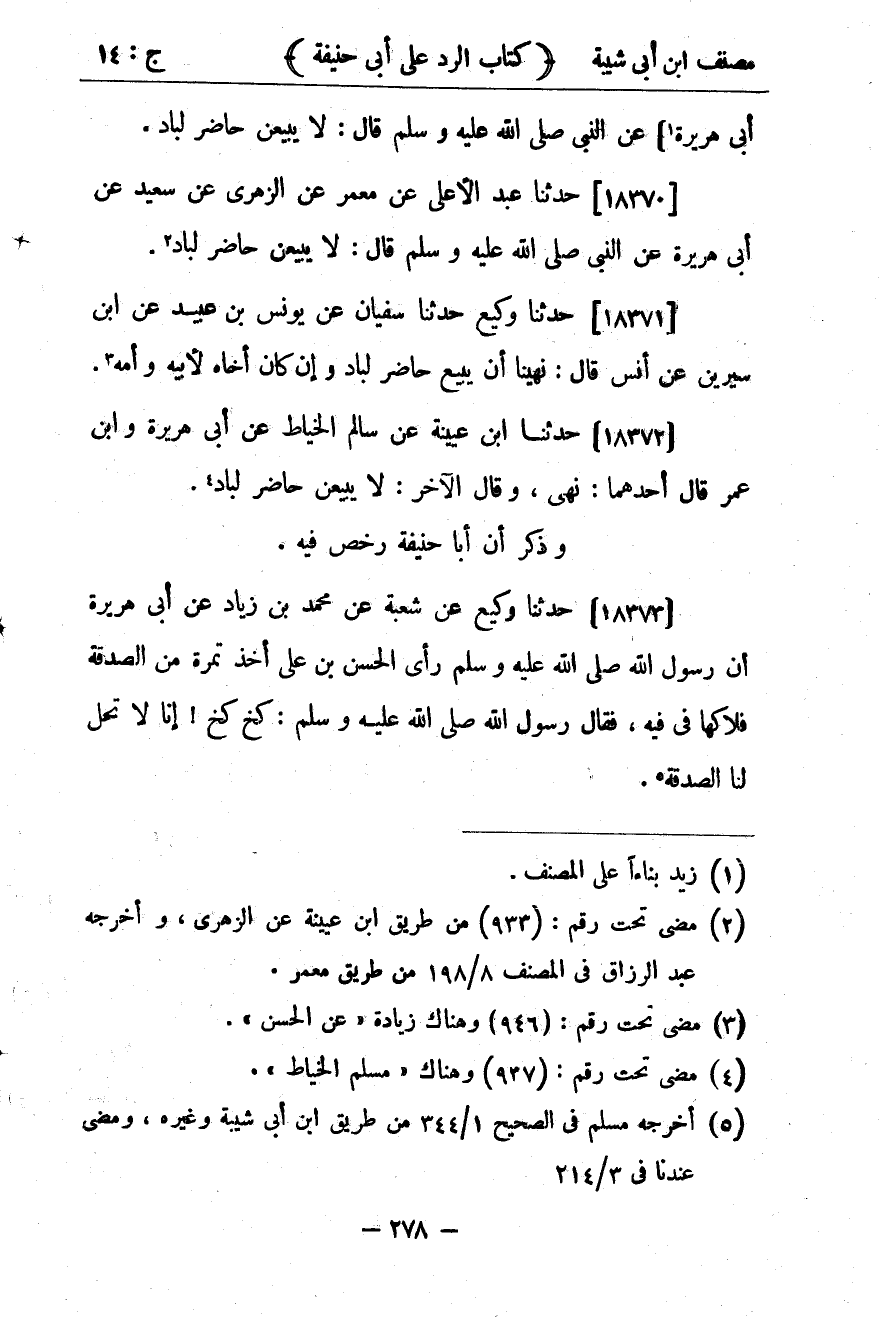 كتاب مصنف ابن أبي شيبة ط السلفية بالهند (اسم الجزء: 14)