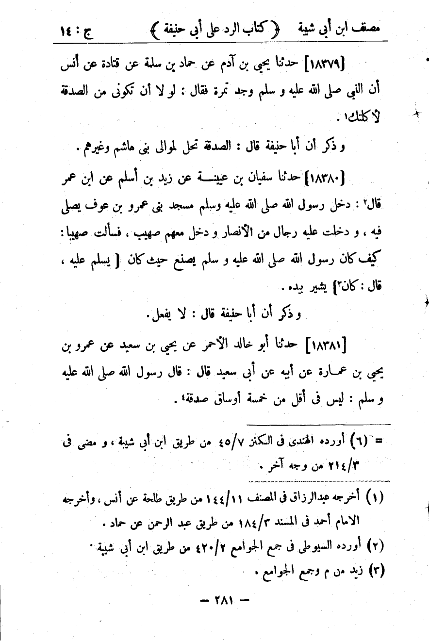 كتاب مصنف ابن أبي شيبة ط السلفية بالهند (اسم الجزء: 14)