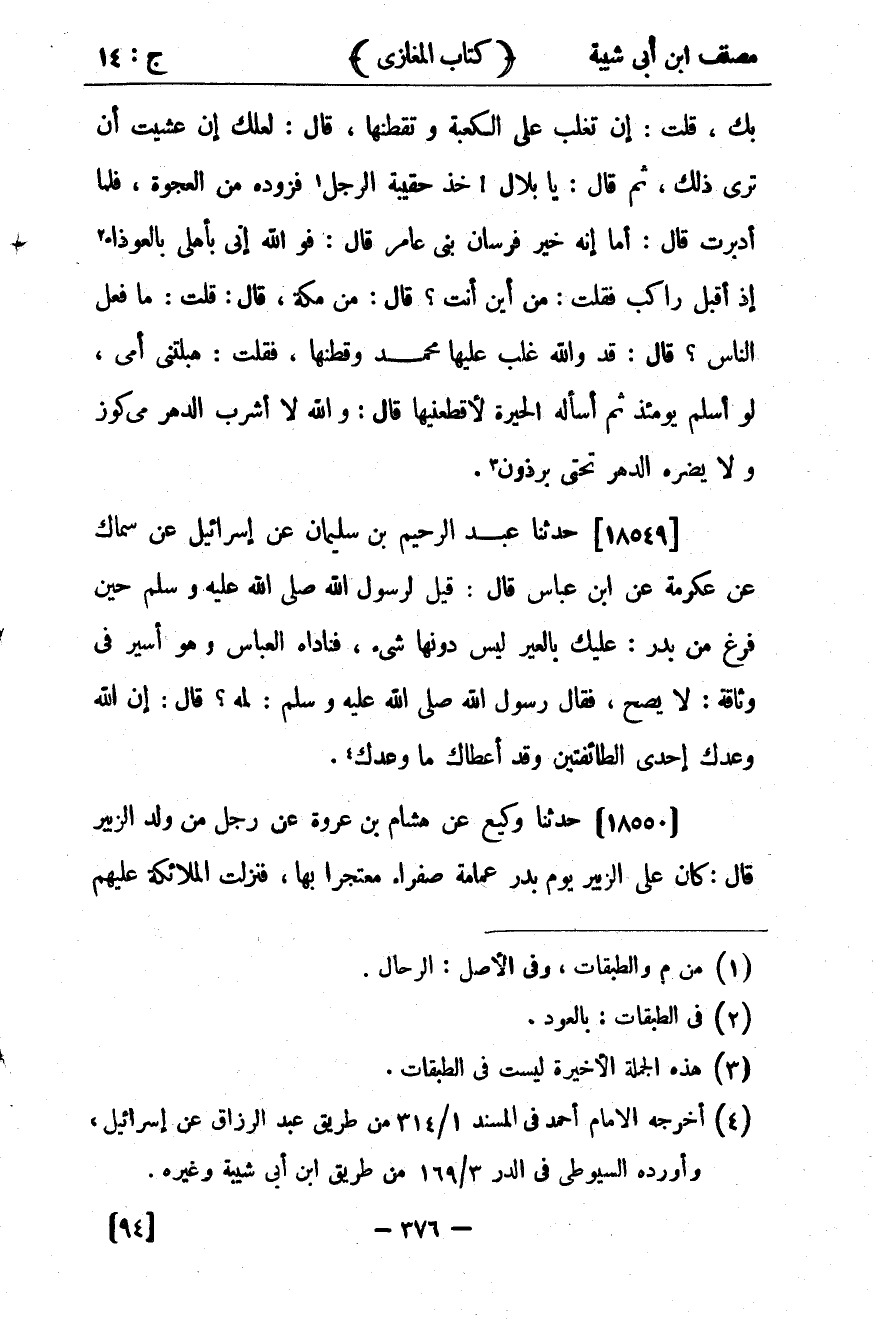 كتاب مصنف ابن أبي شيبة ط السلفية بالهند (اسم الجزء: 14)