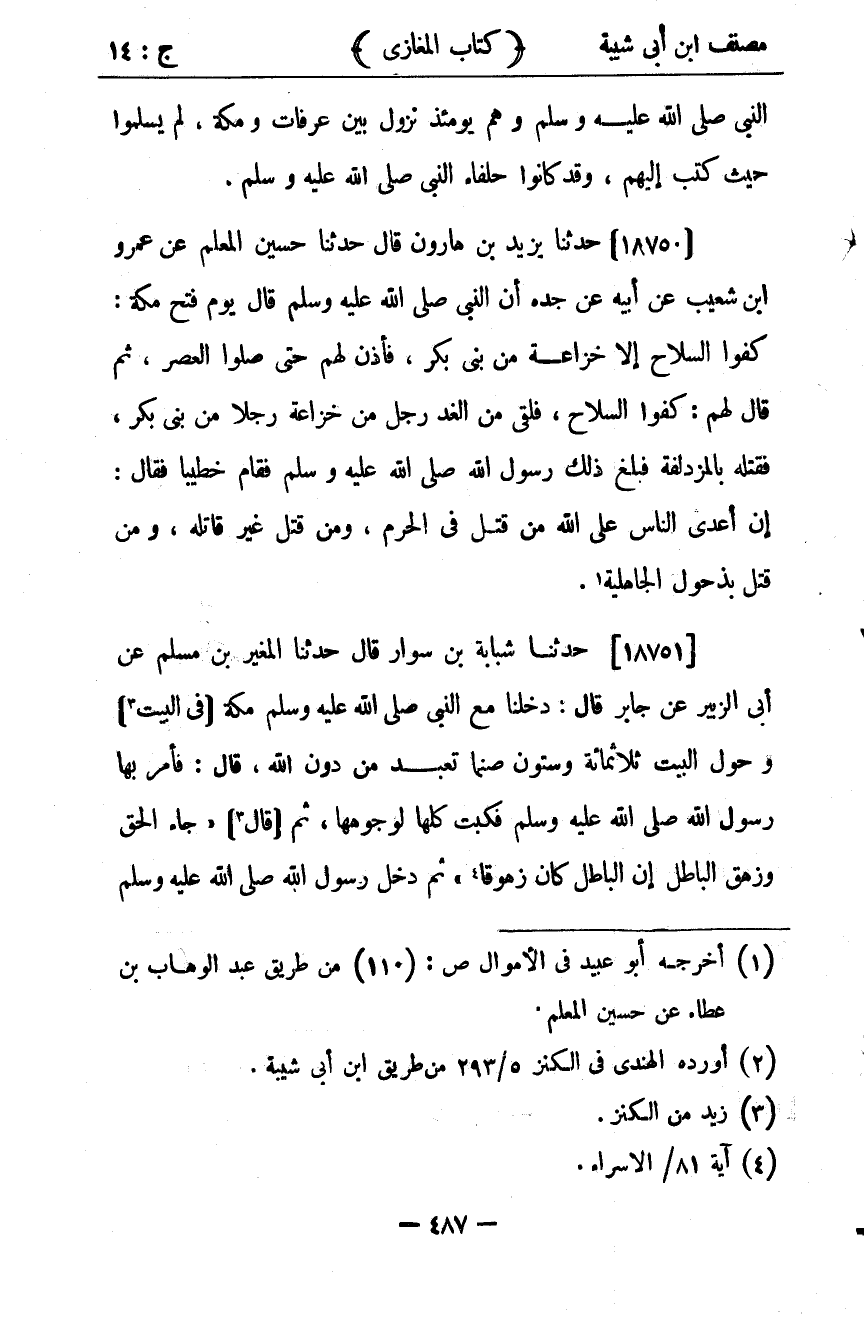 كتاب مصنف ابن أبي شيبة ط السلفية بالهند (اسم الجزء: 14)